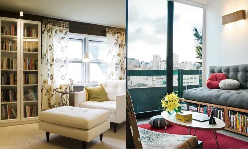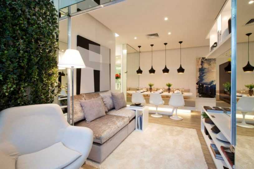 Комната, совмещенная с балконом, с несколькими типами освещенияИсточник homify.com.br