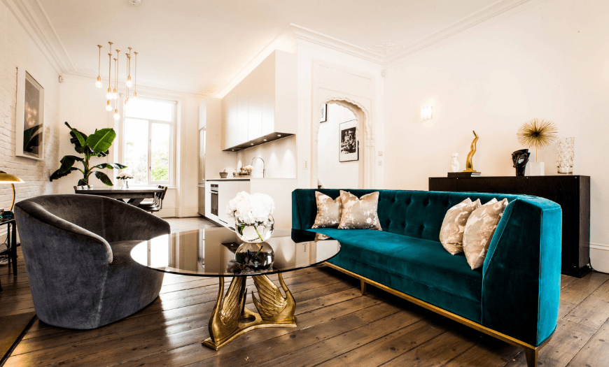Когда вы имеете дело с открытым пространством интерьера, миниатюрную мебель лучше не использовать. Больше подойдут массивные конструкции.