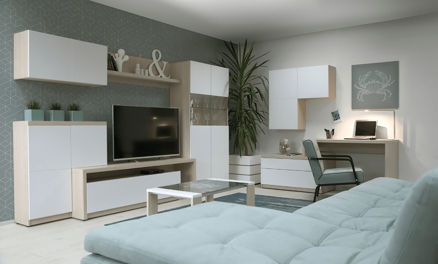 Лучшее решение для маленькой гостиной — это применение модульной мебели. Она функциональна и хорошо смотрится.