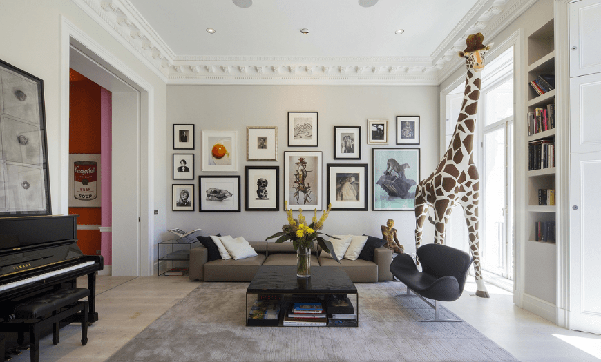 Художественный интерьер в комнате проявляется в необычном декоре и авторской мебели.
