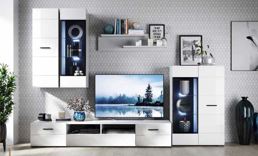 В белой гостиной дизайнеры часто обыгрывают контрасты между глянцем мебели и матовой поверхностью стен. В светлый интерьер гармонично вписывается стекло. Фасады систем хранения визуально увеличивают пространство. Прозрачный журнальный столик парит над полом.