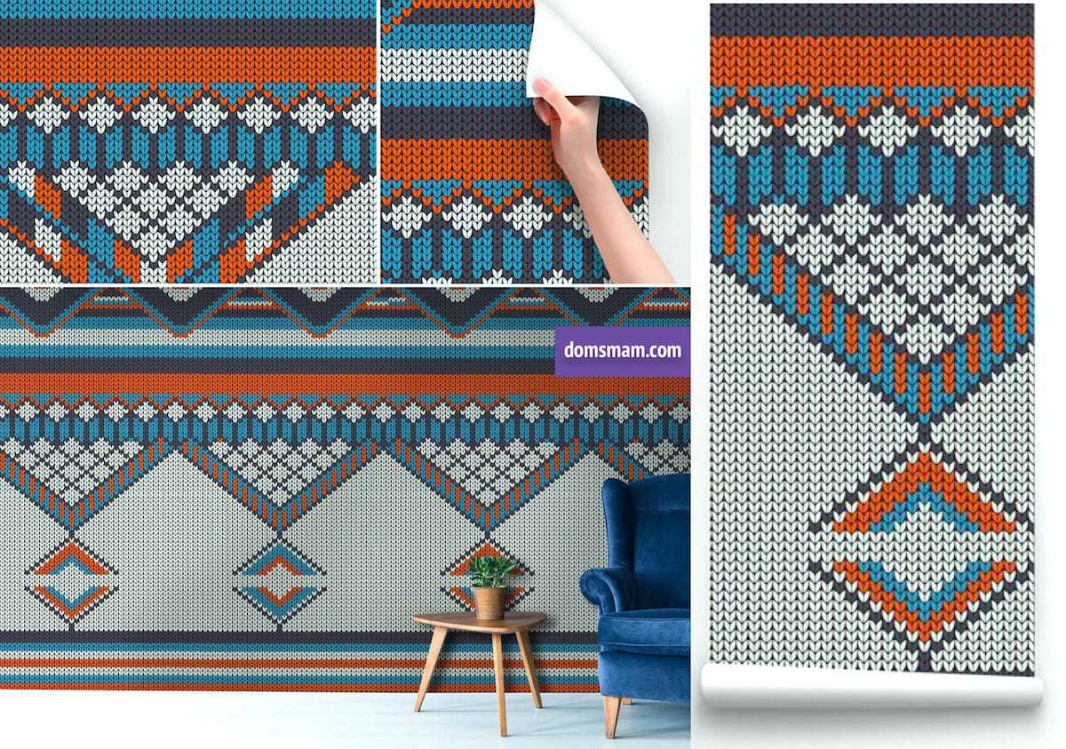 Создают неповторимую атмосферу модные обои 2022 с рисунком, стилизованным под вязаное полотно. Особенную актуальность такое решение находит при создании интерьера с элементами скандинавского стиля. Рекомендуется оформлять обоями с выразительным ретро принтом зону отдыха в гостиной. Гармоничным дополнением послужит теплый вязаный плед, накинутый на диван или кресло.
