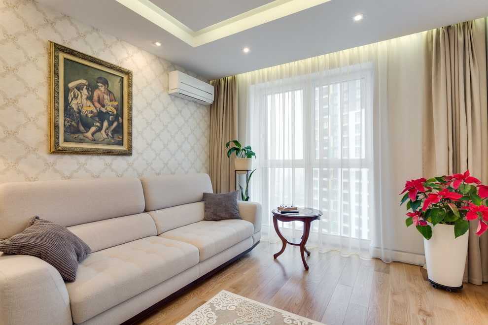 - Оставьте широкие возможности для изменений в интерьере — бежевая гостиная будет отлично смотреться как в современном, так и в немного более классическом варианте,