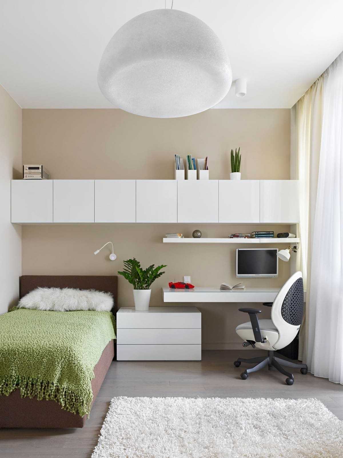 Такая комбинация станет отличным решение для комнат, отличающихся небольшими размерами. Зелено-бежевый дизайн, обладает максимально гармоничным видом и располагает для отдыха и релакса.