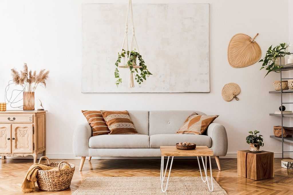 Современный стиль бохо сочетает в себе радостный дух богемы и скандинавскую любовь к простоте. Интерьеры, оформленные в этой эстетике, отличаются умеренностью и узкой цветовой палитрой. Узорчатые ткани и контрастные сочетания, характерные для стиля бохо, заменяются мягкими землистыми тонами: бежевым, коричневым, белым, охристым, зеленым и черным. В интерьерах преобладают натуральные материалы и изделия ручной работы: мебель из ротанга, гобелены, глиняная посуда, лампы и украшения из бамбука.