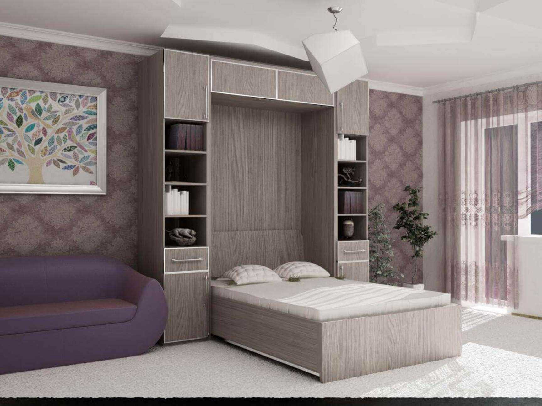 Трансформер двуспальная кровать в однокомнатной квартире будет идеальным решением для тех, кто желает сэкономить пространство. Она пригодится тем владельцам квартир, у которых не длинные, а широкие комнаты.