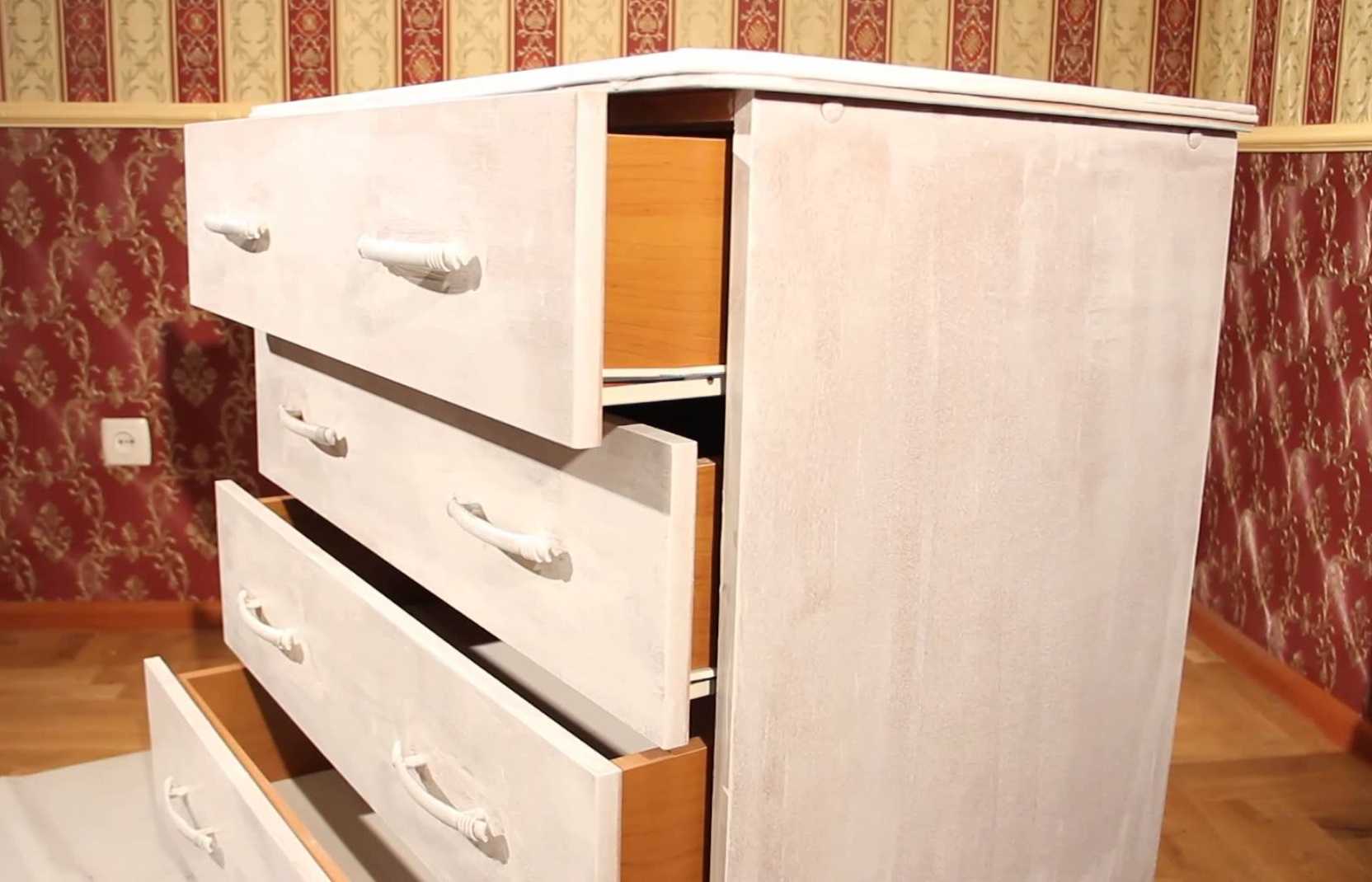 Подготовительные работы также предусматривают демонтаж необходимых деталей мебели, снятие фурнитуры и креплений, а также изолирование декоративных элементов, которые не предусматривают окрашивание.