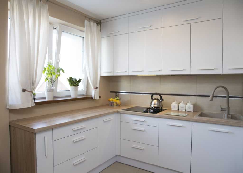 Если однотонная отделка маленькой кухни вам показалась скучной, просто учитывайте цветовые акценты — плинтуса, контрастные полосы обоев или купите материал с интересной фактурной поверхностью. Гарантируем, что в таком интерьере вам не будет скучно!