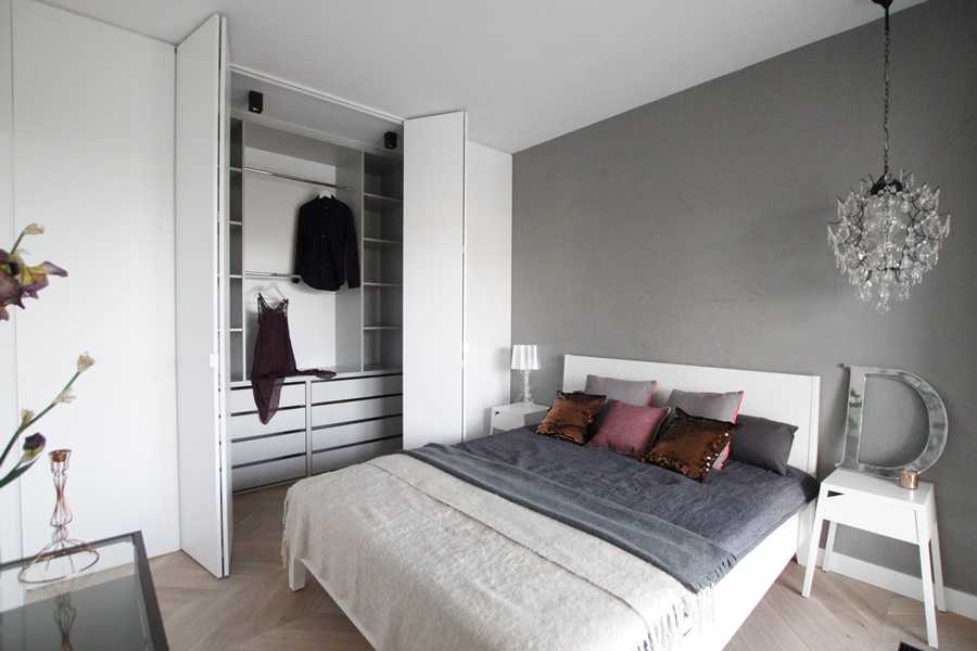 Теперь нужно разобраться со шкафом. Обычно такой предмет мебели обязательно имеется в спальне. Исключение — наличие гардеробной в доме или квартире. Тогда шкаф в спальне — это не предмет прямой необходимости. Его место могут занять стеллажи, туалетный столик или тумба под телевизор.