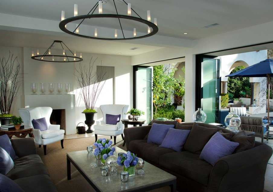Люстры в современном интерьере склонны к минимализму и практичности. Простой орнамент или геометрия, без подвеса, в нейтральной гамме создают лаконичный образ помещения.