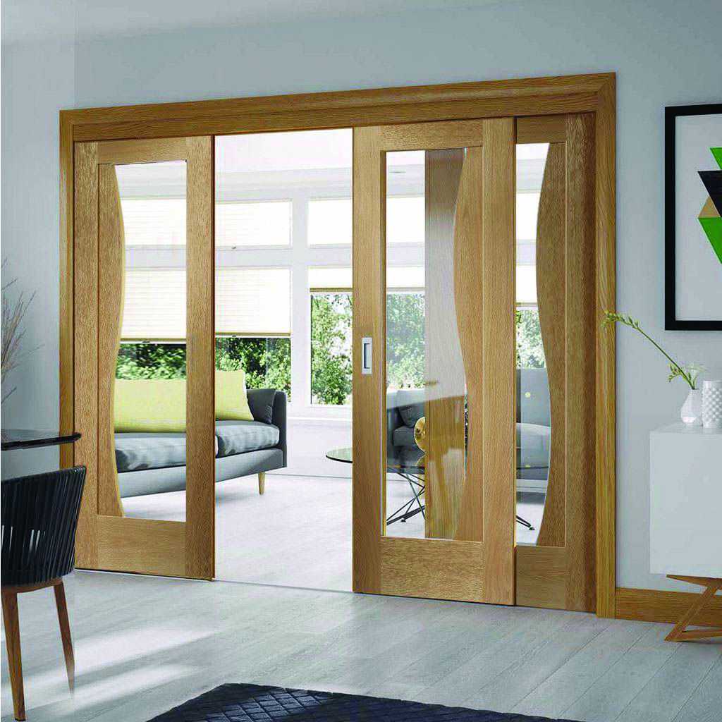 Подобные двери купе могут быть выполнены из самых разных материалов. Наряду с «глухими» на рынке представлены прозрачные стеклянные конструкции.
