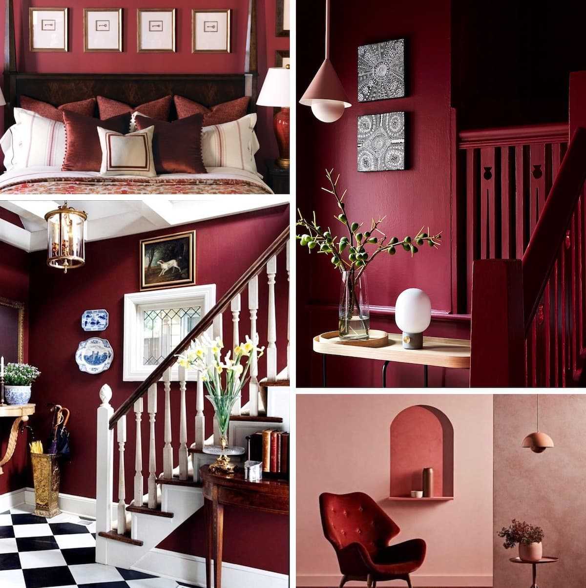 Еще один модный цвет марсала, представляющий собой приглушенный аристократичный бордовый оттенок с коричневыми нотками. Он гармонично вписывается в интерьер, решенный с доминированием золотисто-коричневого звучания с добавлением малинового декора.