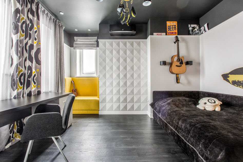 В спальне и гостиной такую отделку можно использовать для зонирования и выделения спального места