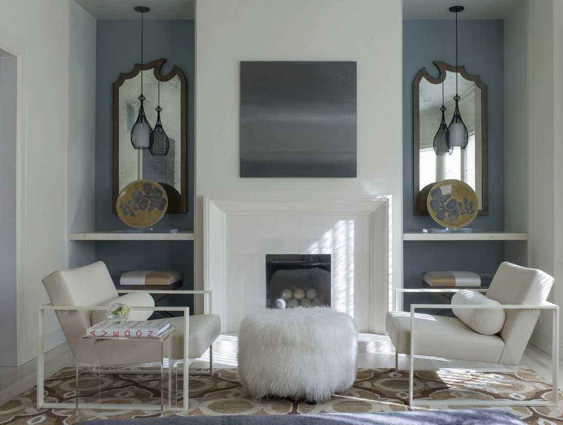 Зеркальные поверхности в интерьере той или иной комнаты уже давно не считаются чем-то особенным, поэтому, как вариант, можно оформить нишу в гостиной при помощи зеркала. Такая дизайнерская задумка смотрится весьма эффектно и позволяет визуально увеличить площадь помещения.