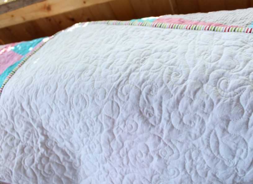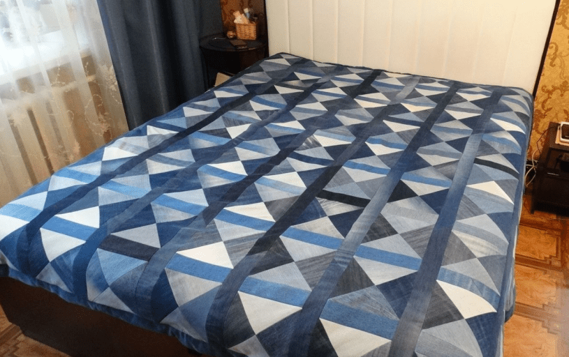 С одной стороны оставляют не застроченным участок 30-35 см и через него выворачивают покрывало на лицевую сторону и зашивают потайным швом.