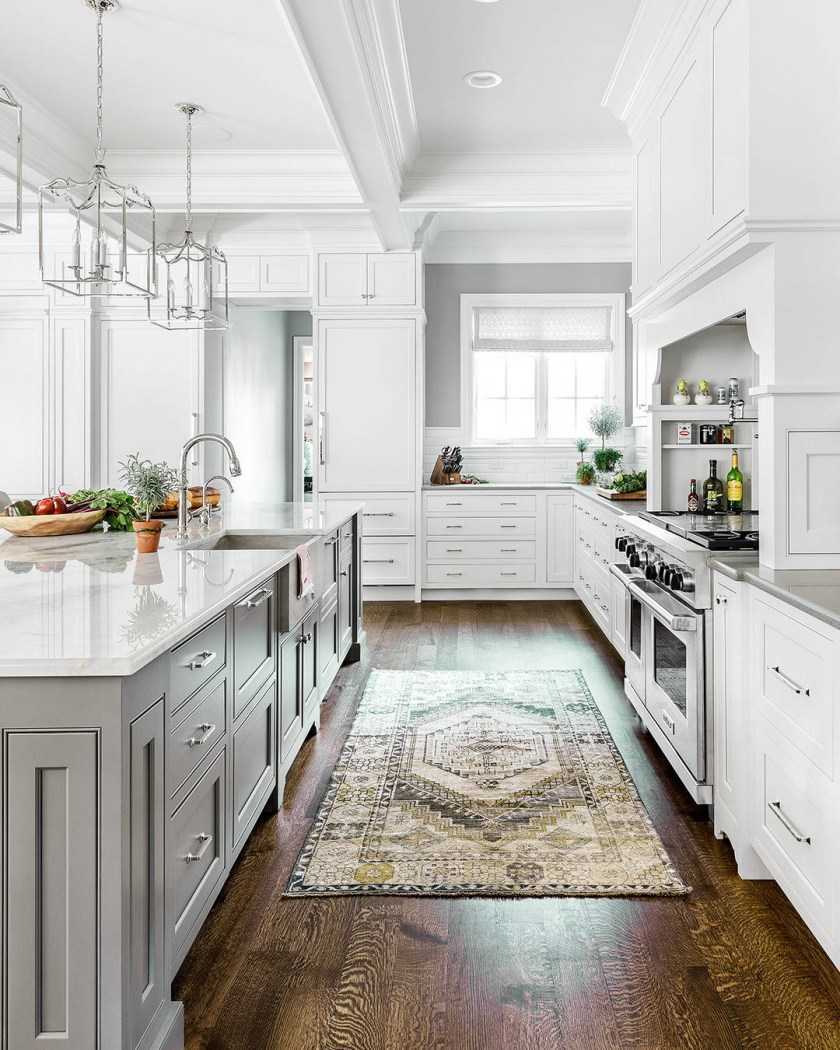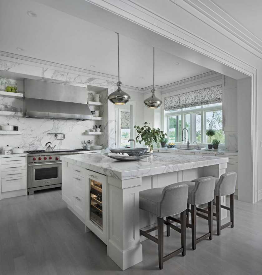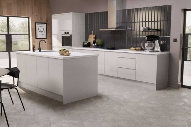 Размышляя о том, какая столешница для серой кухни подойдет лучше всего, подумайте о кварцевом агломерате, который только набирает популярность. Материал устойчив к царапинам, истиранию и химическим чистящим средствам. Кварцевый агломерат может имитировать мрамор — он не менее эффектно выглядит, но в то же время устойчив к появлению пятен. Вы также можете легко найти столешницы, имитирующие другие материалы, например бетон.