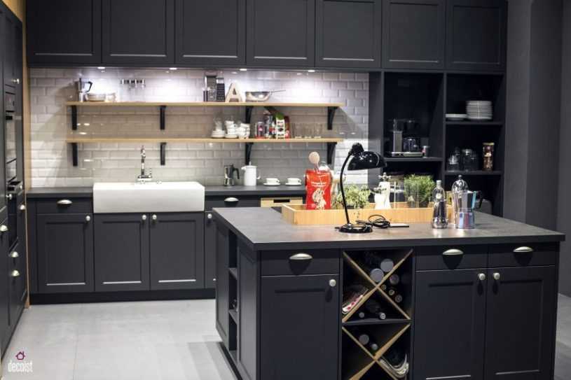 Черная мебель всегда выглядит роскошно. Но обилие черных поверхностей может вызвать удручающее настроение, особенно, если фасады гарнитура выполнены в матовых оттенках.