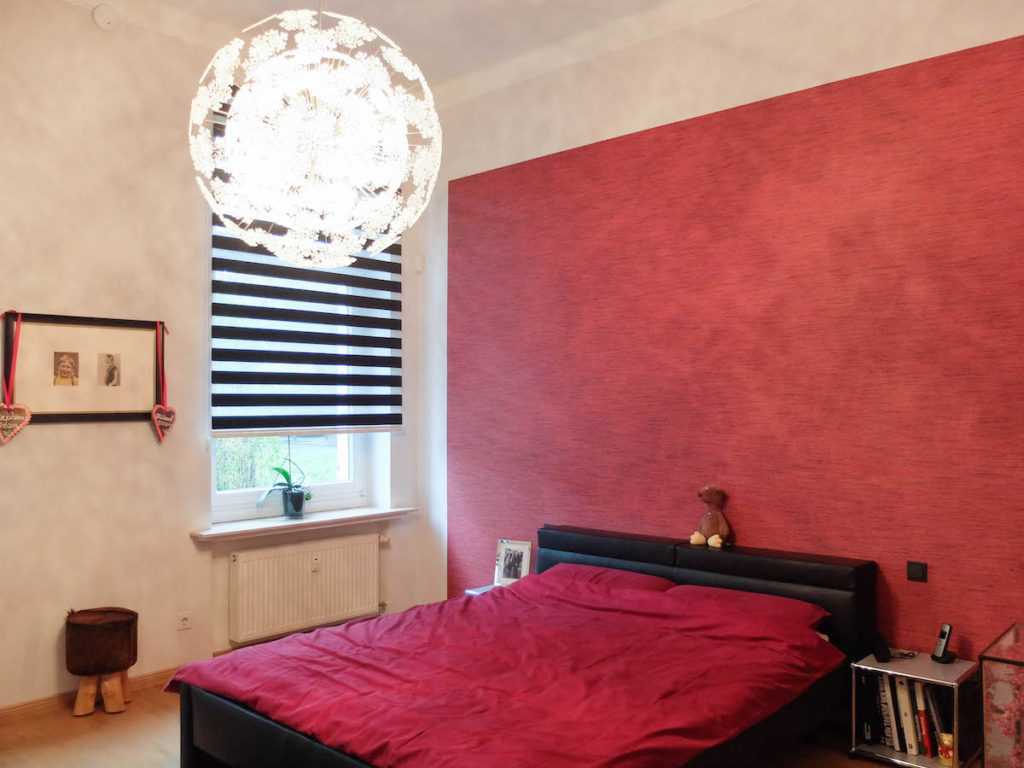 - В комнатах с узкими стенами правильным решением будет выбор полотна яркого или контрастного оттенка. Такой способ позволит приблизить стену, сделав помещение более гармоничным.