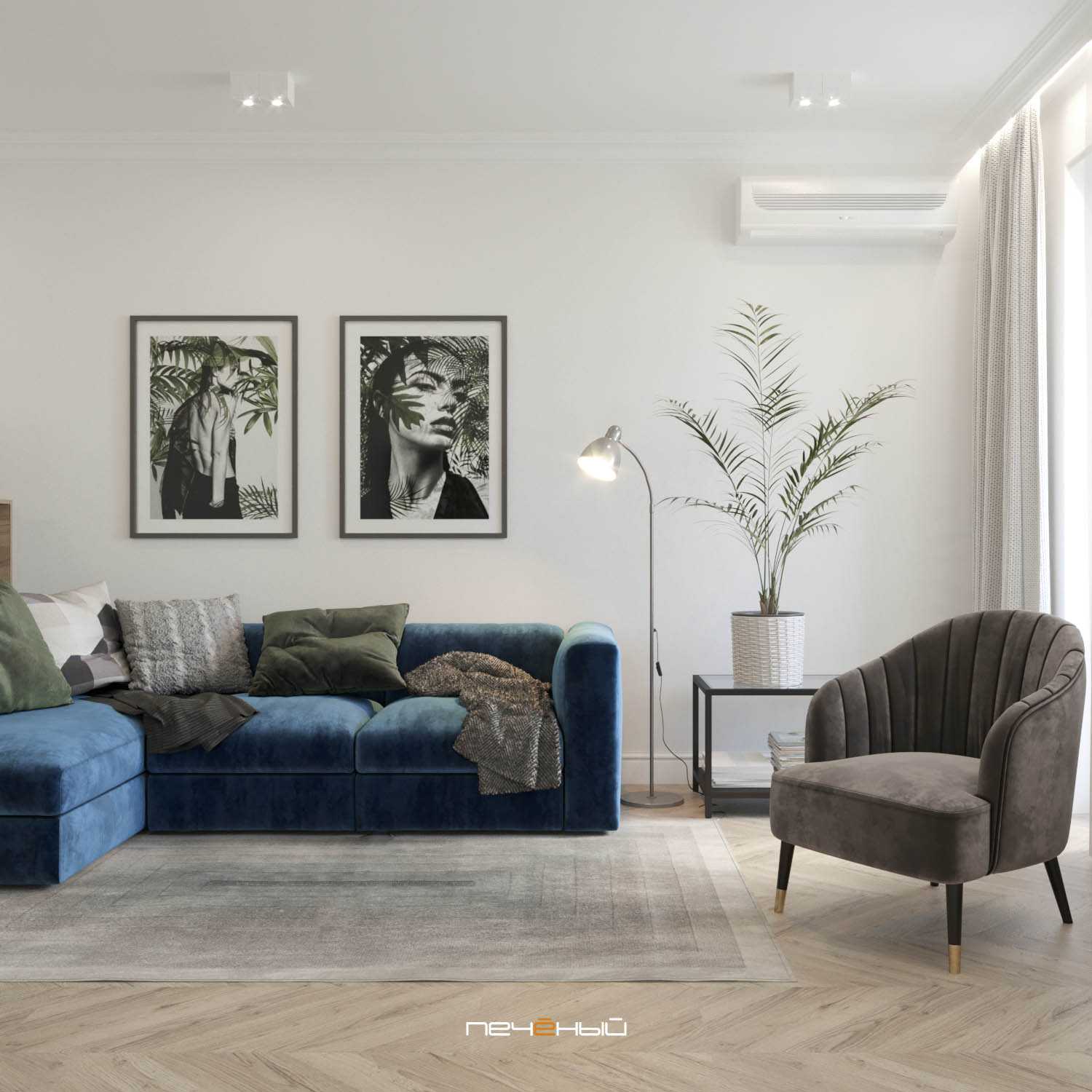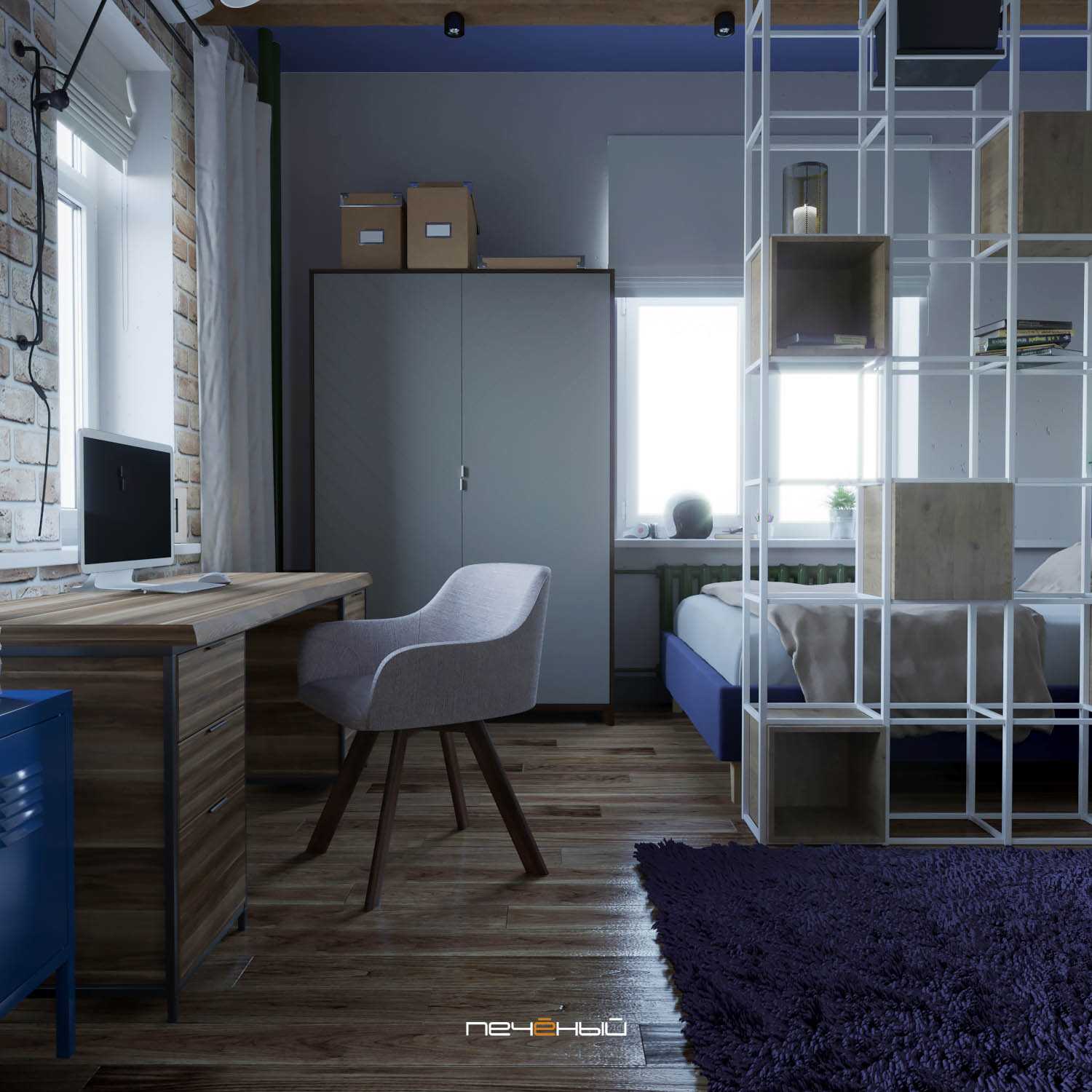 Серо-синий интерьер