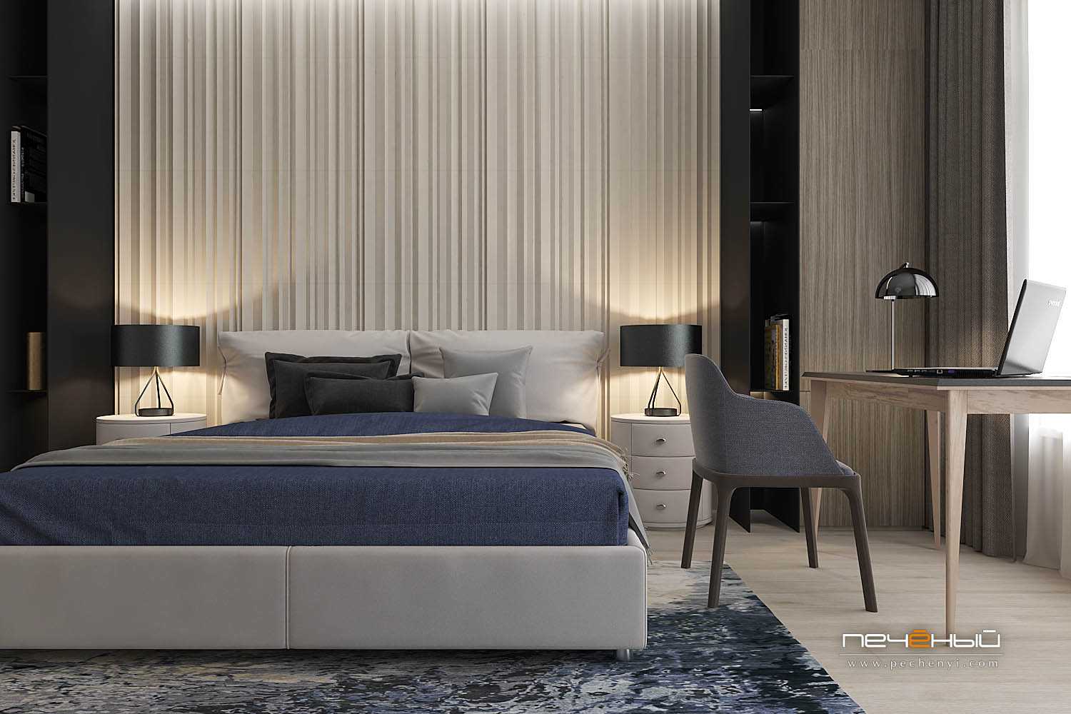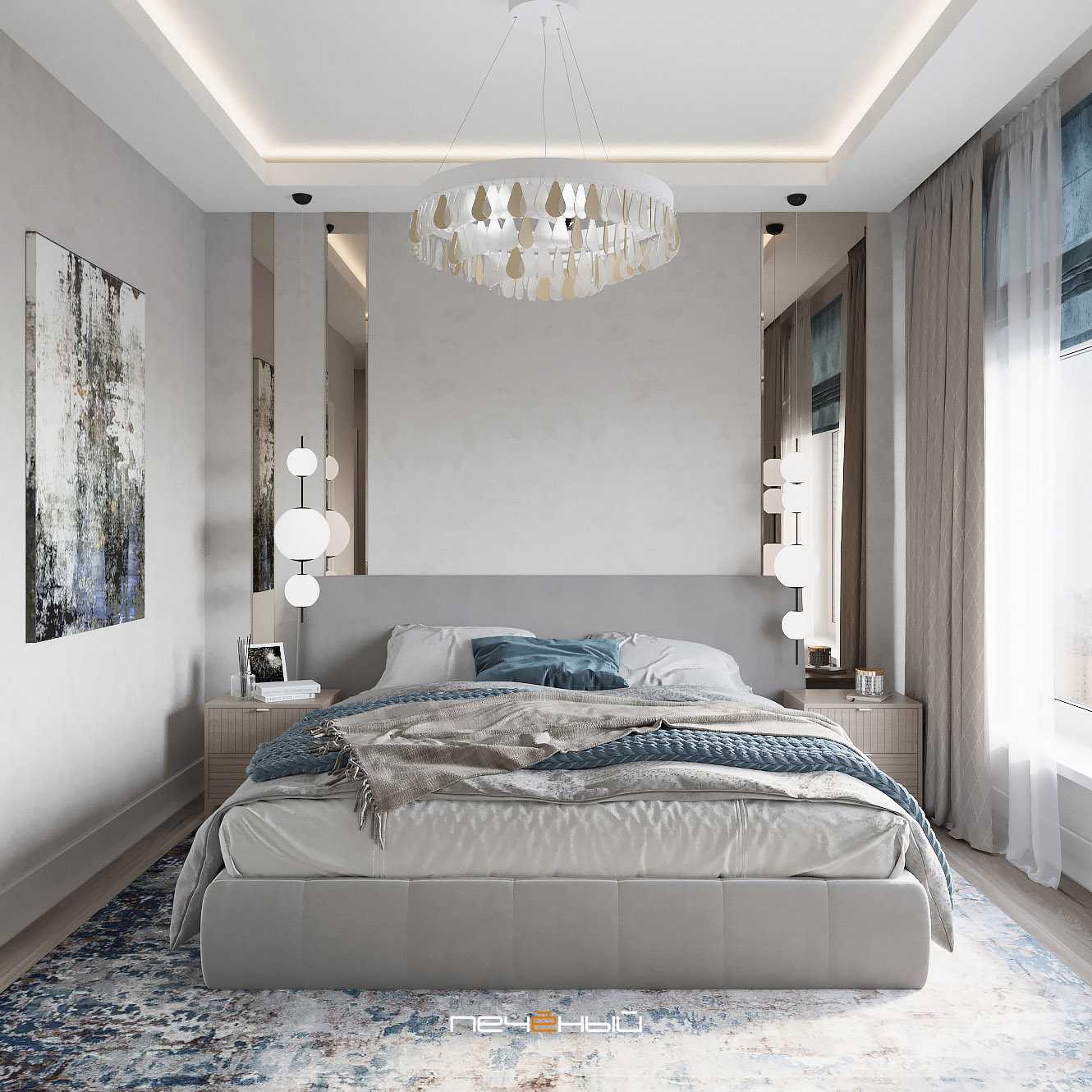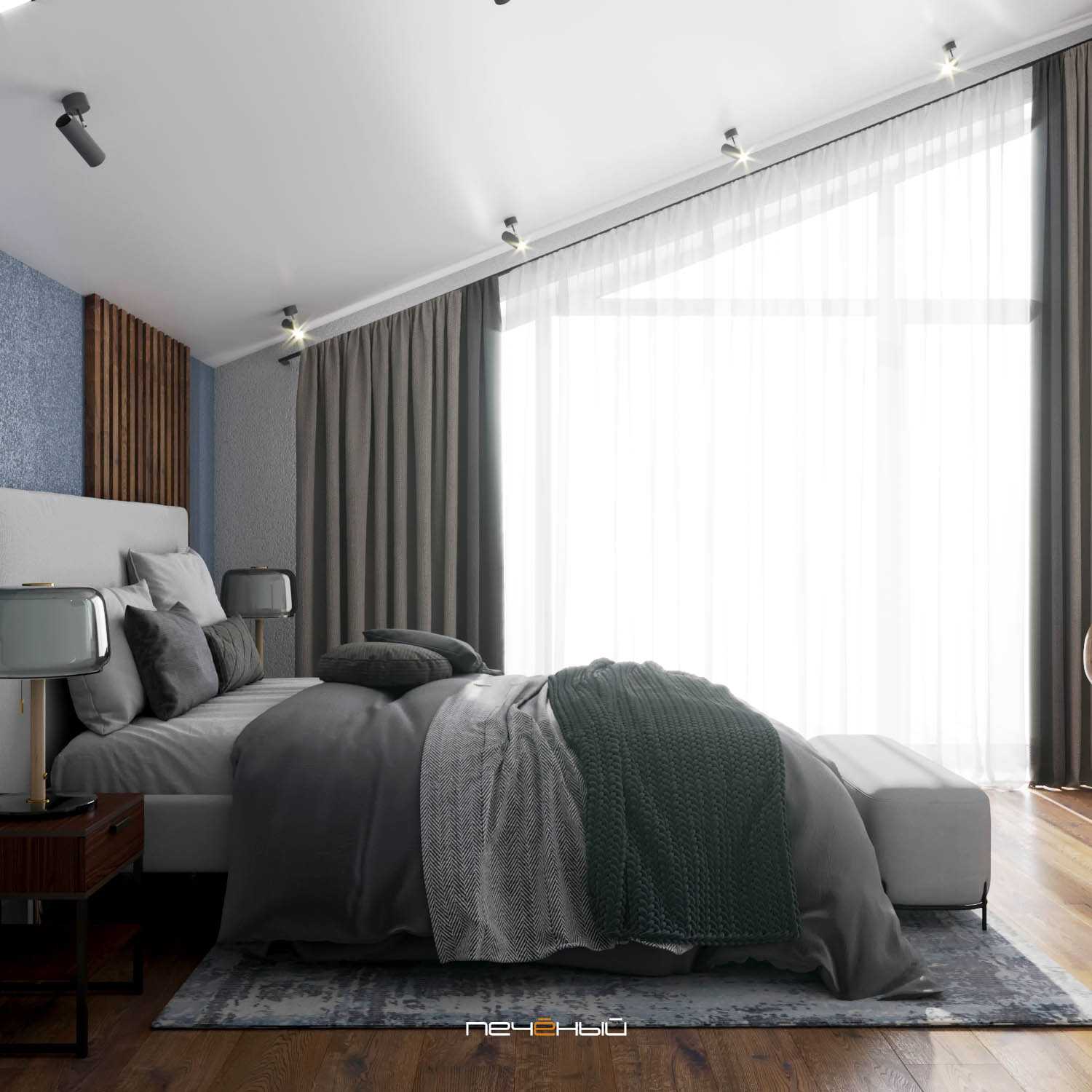 Интерьер спальни в сером цвете