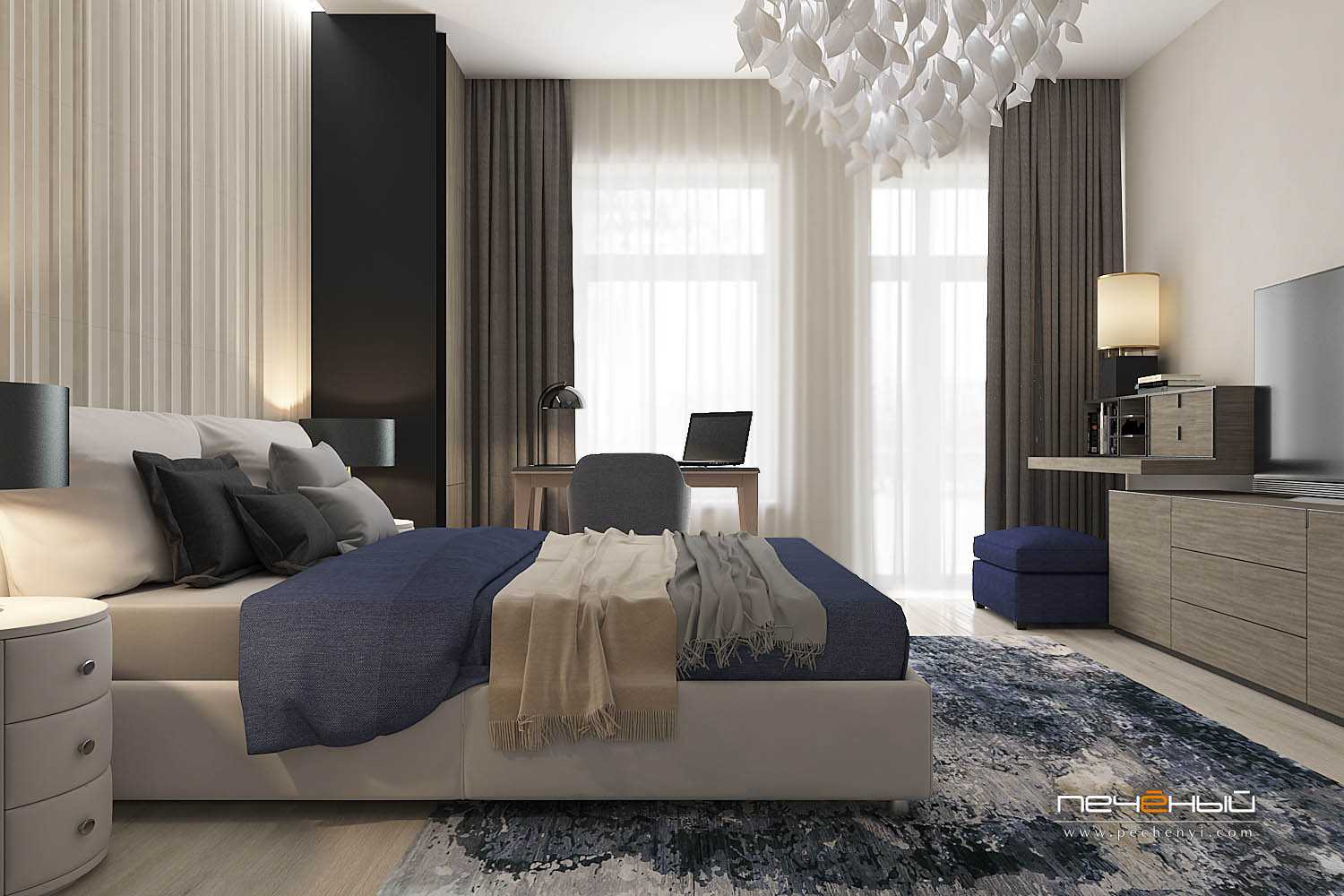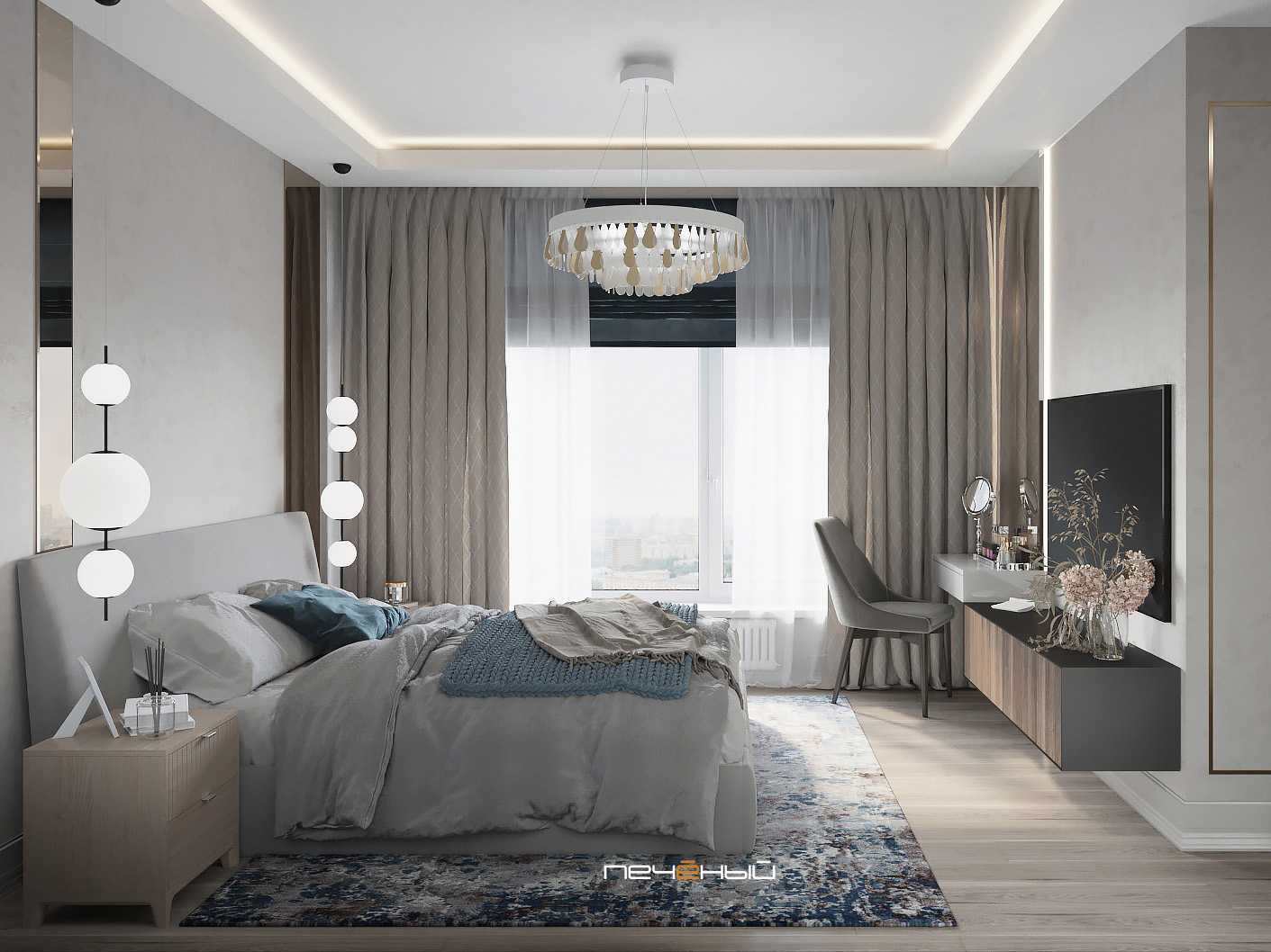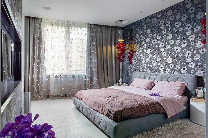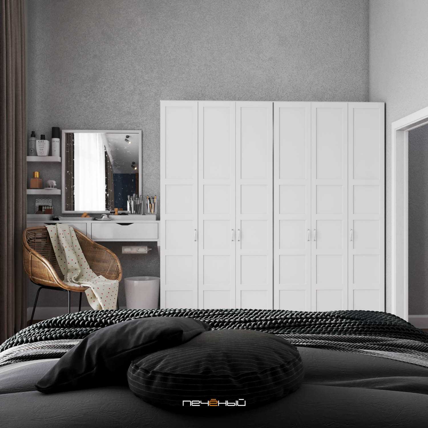 Интерьер спальни в сером цвете