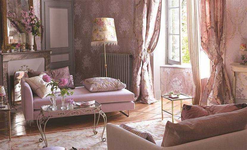 Пыльно-розовый делает помещение более светлым, уютным, изысканным, особенно если подобрать для помещения дорогой текстиль такого же оттенка. Прекрасно вписывается в «шэбби-шик» и «прованс», для которых характерны уютные состаренные предметы и текстиль. Также прекрасно подходит для стилей «лофт», классицизм, эклектика.