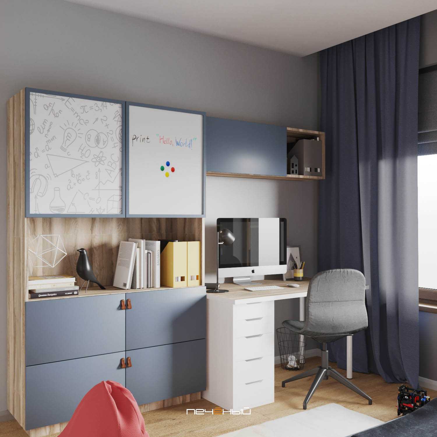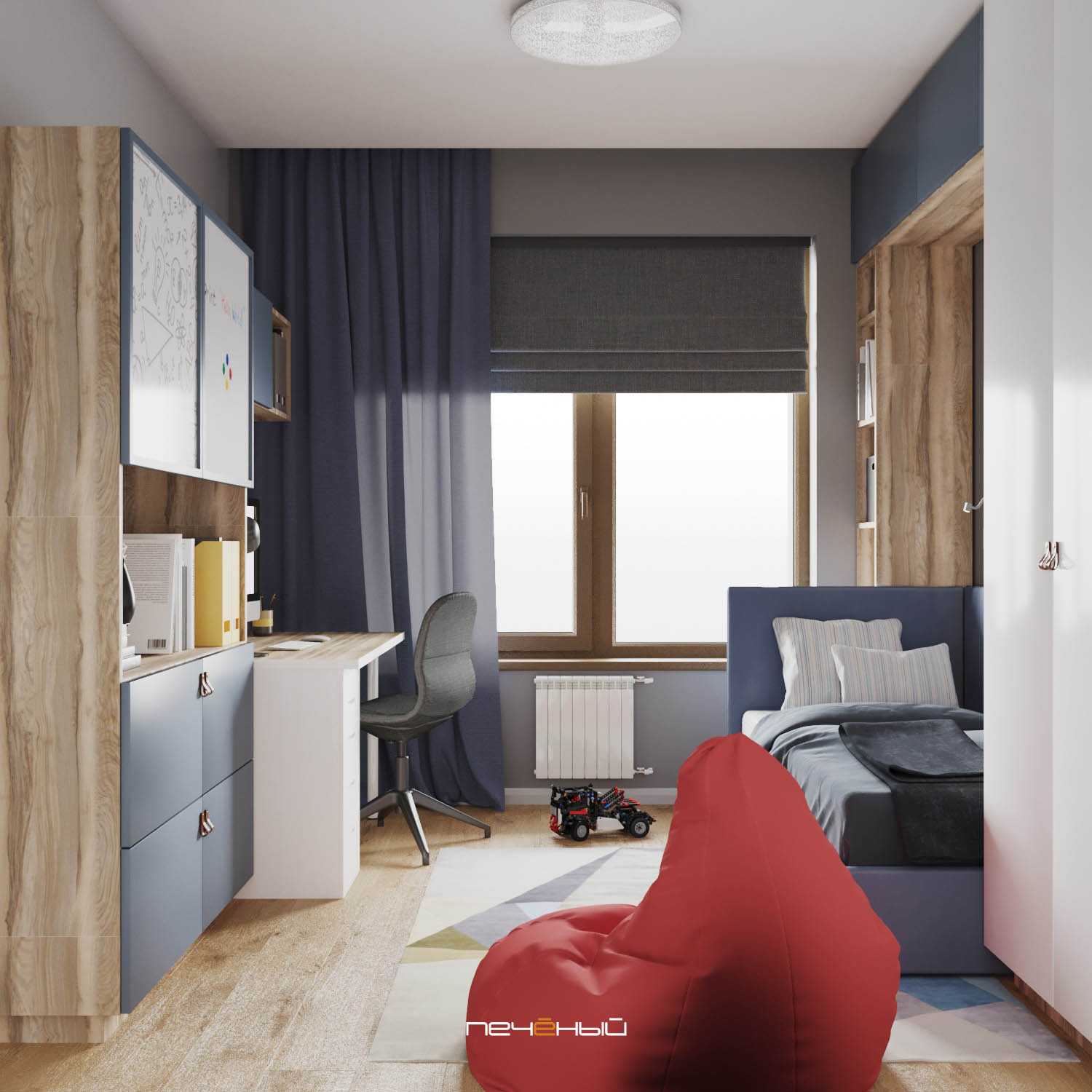 Очень достойный вариант оформления детской для мальчика-школьника – в меру ярко и в то же время сдержанно.
