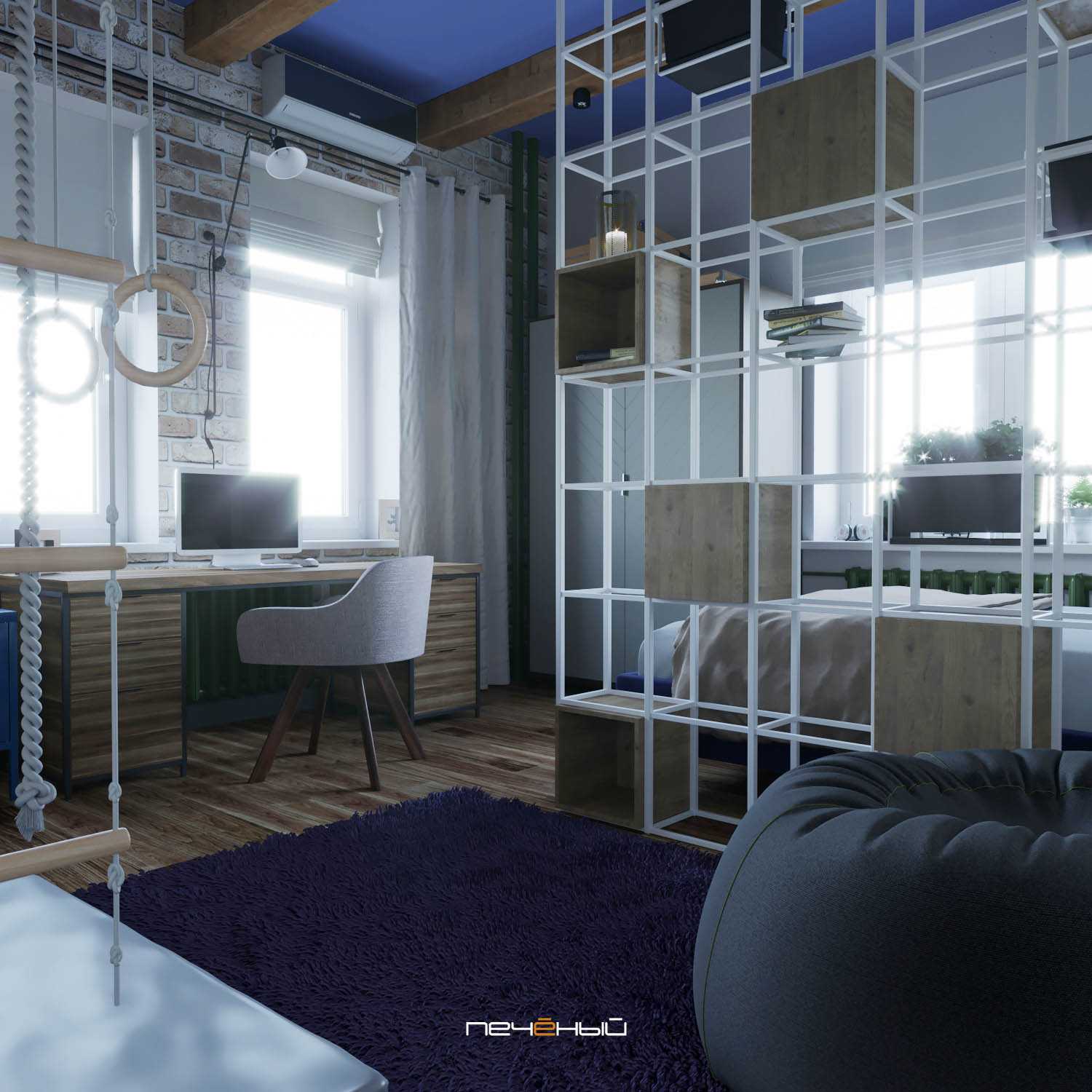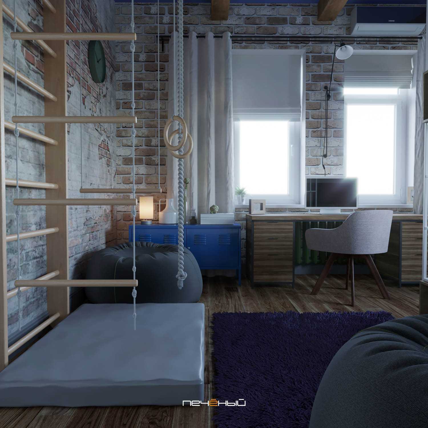 Детская в стиле лофт? Ну а почему бы и нет! Особенно, если добавить немного ярких акцентов.