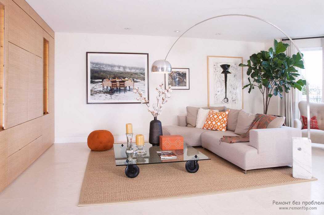 Дополнительные элементы, например, несколько картин или часы в яркой рамке, доведут интерьер до совершенства. Если желателен минималистичный стиль, можно прибегнуть к такой хитрости: только пол и мебель будут серыми, а стены – песочными.