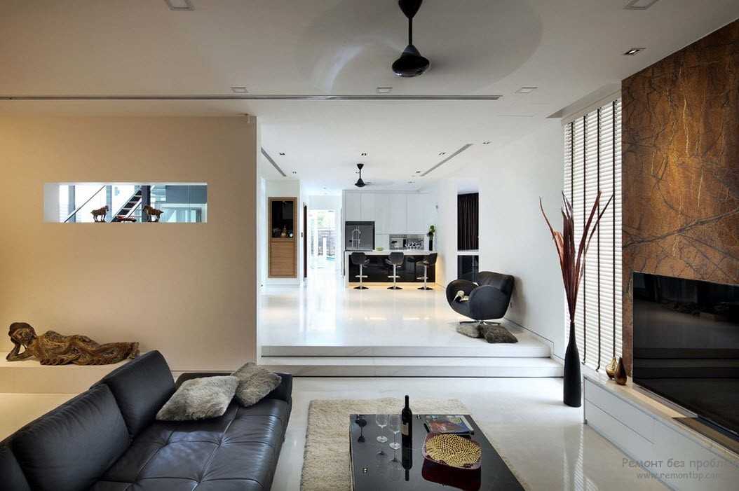 Стиль минимализм – на базе светлой палитры, разбавленной черными, серыми или коричневыми тонами. Таким образом подчеркивается сдержанность и строгость интерьера.