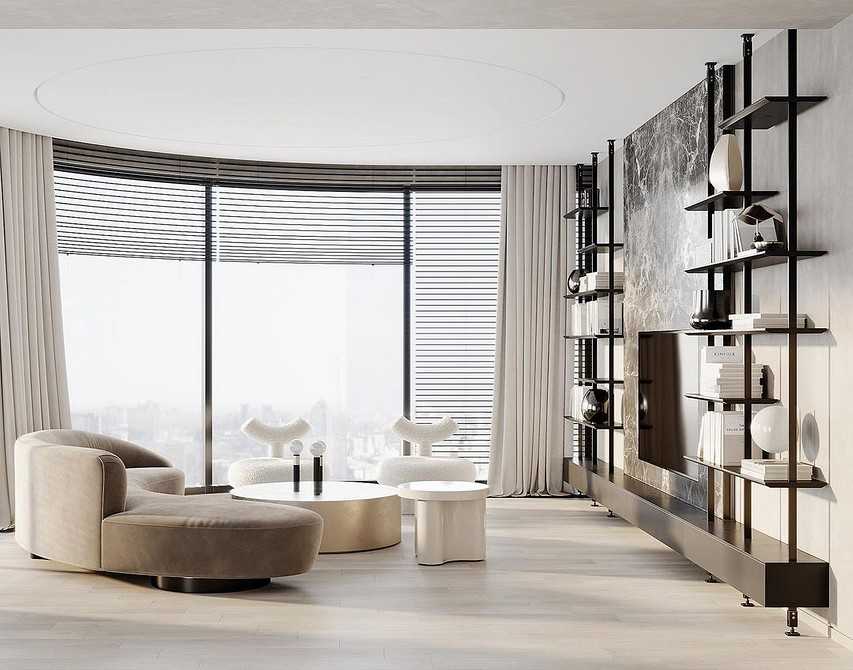 Все чаще дизайнеры выбирают модные шторы вместо традиционных в гостиной в современном стиле (фото ниже). Особенно это актуально для минималистичных и современных интерьеров, где минимизируется количество отделки и отпадает необходимость создавать уют в традиционном понимании — с помощью обилия многослойных тканей.