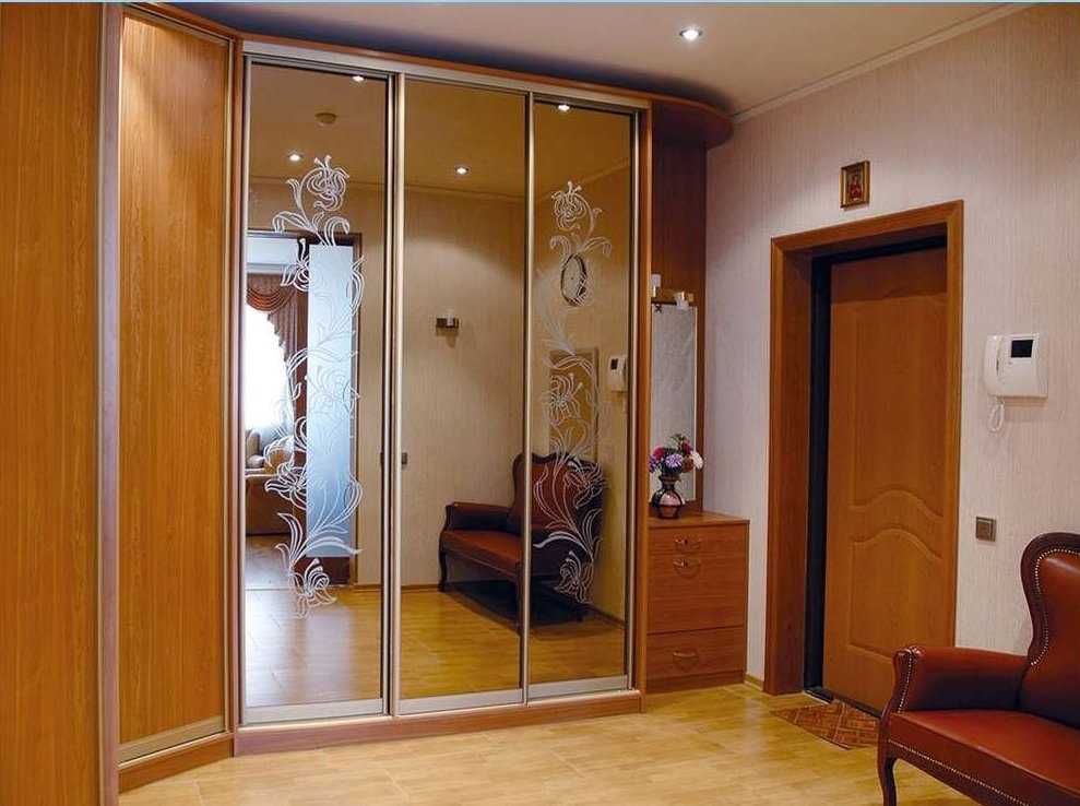 По-особенному чарующе смотрятся угловые шкафы-купе с матовыми стеклами, декорированными красивым пескоструйным узором, и стеклом Лакобель (когда одна сторона покрыта ровным слоем лака / краски).