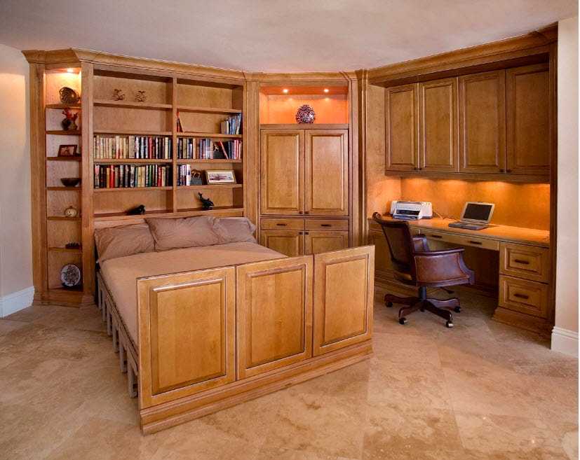 - книжный — открытые либо спрятанные за стеклянными дверцами полки.
