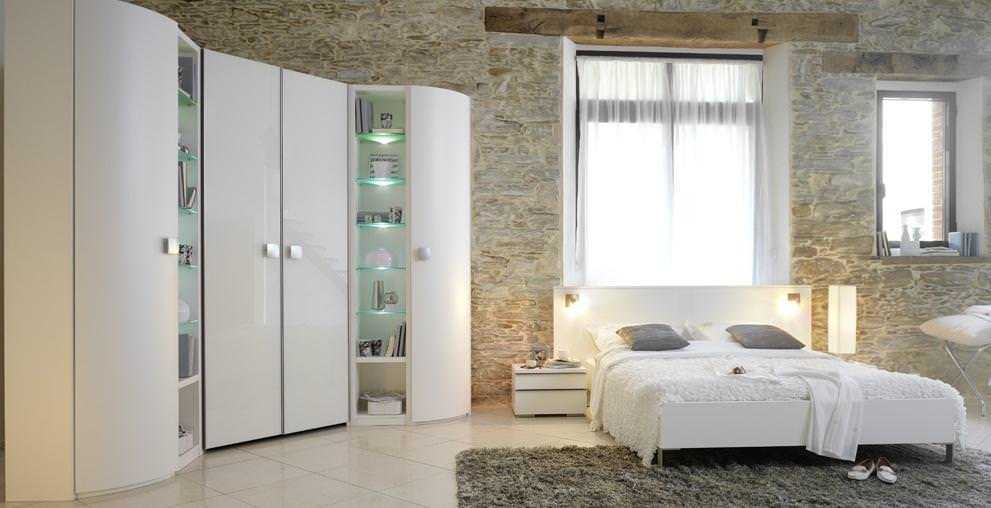 - Радиусными (или радиальными). Отличительные особенности подобных конструкций для одежды: сглаженность углов, плавные линии, фасады. Радиусный шкаф довольно оригинальный, он станет украшением любого интерьера, хорошо сочетается с крупногабаритной мебелью. Часто подобные модели комбинируют с круглыми кроватями, благодаря чему комната смотрится необычно и свежо. Радиусные модели можно использовать для создания любого интерьера.
