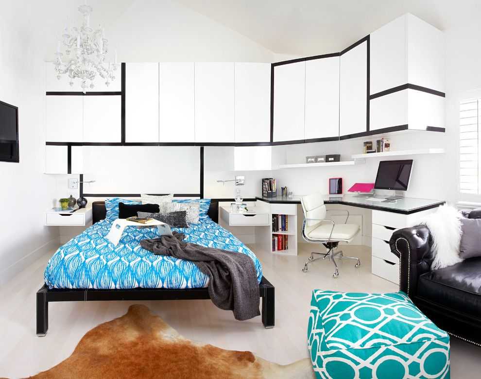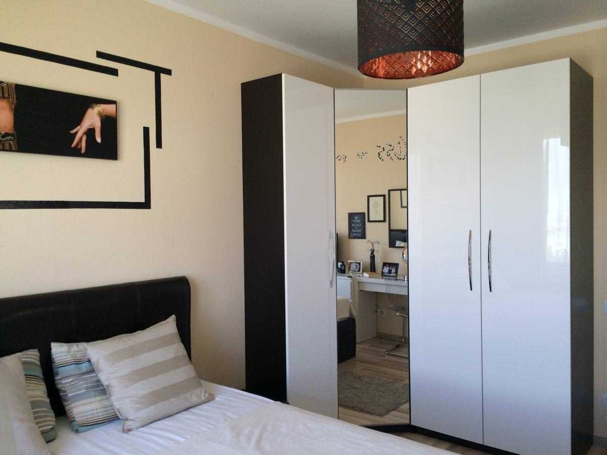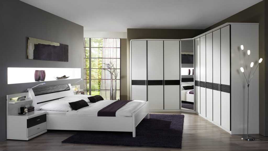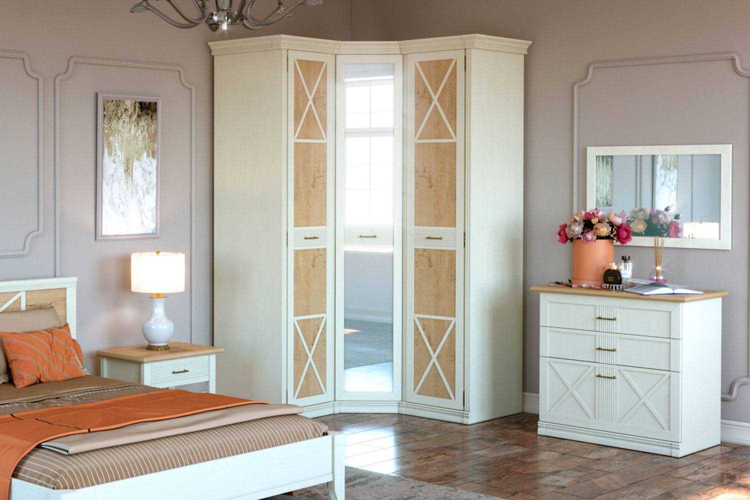 Идеальное решение для спальни, особенно маленькой, в которой вы не можете позволить себе установить очень большое зеркало, — угловой шкаф с отражающим фасадом. Для моделей меньшего и среднего размера он хорошо сочетается с комодом.