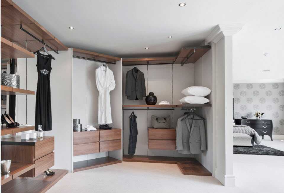 Угловая гардеробная в спальне: какую дверь выбрать для шкафа?