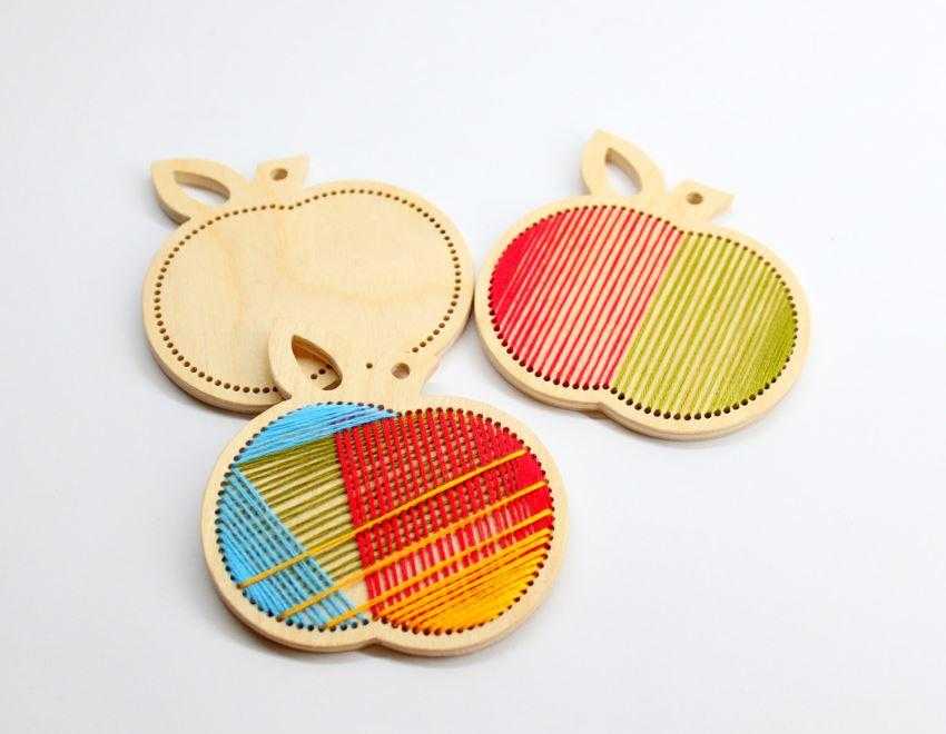 Вы почувствуете акцент скандинавского стиля в комплекте деревянных яблок, которые также станут замечательным подарком для ваших друзей! Березовая фанера была использована в качестве натурального фона для красочного и современного орнамента.