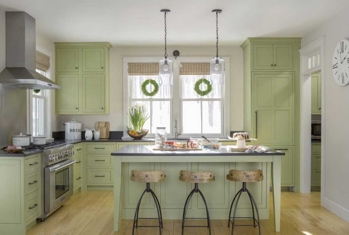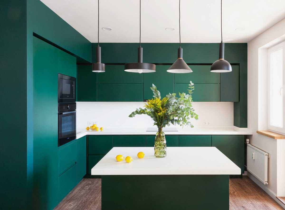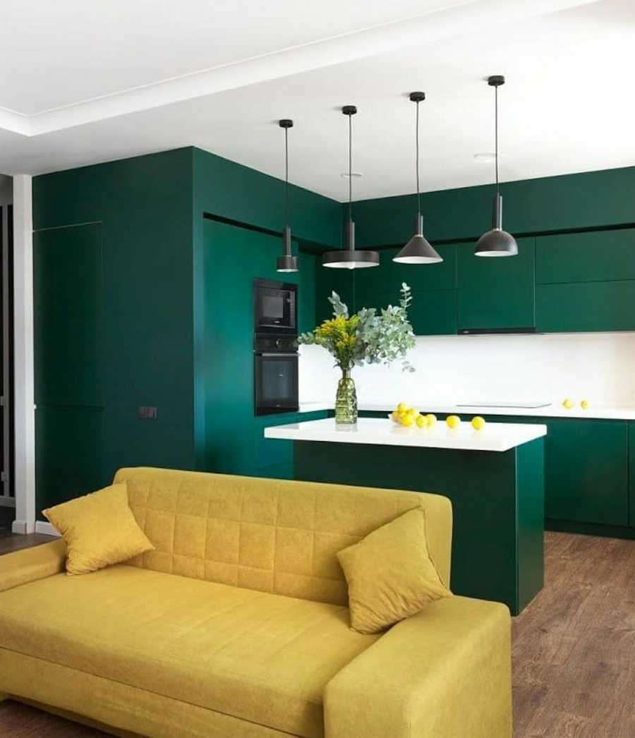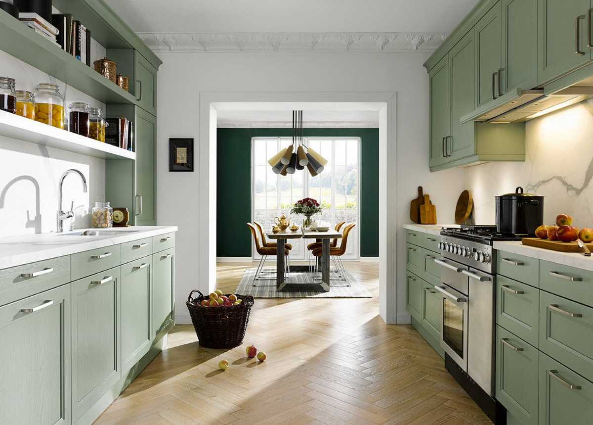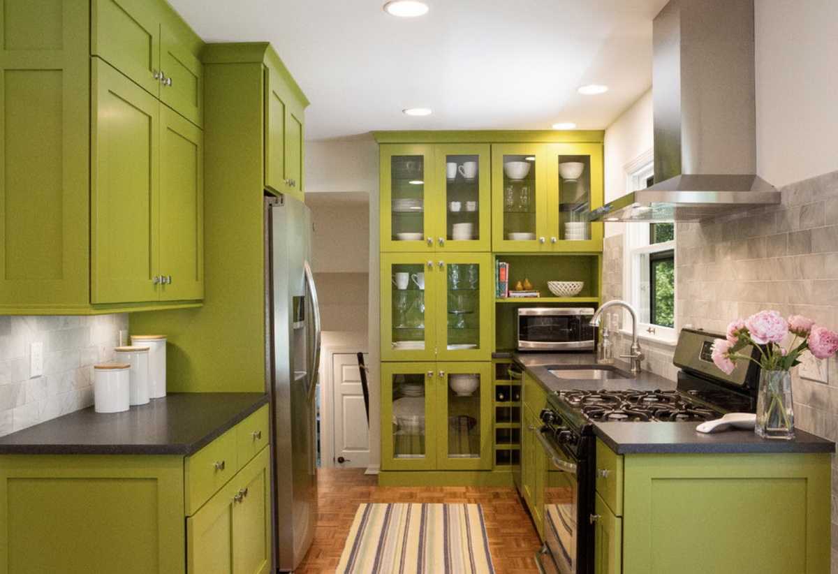 Как сочетать зеленый кухонный гарнитур с интерьером