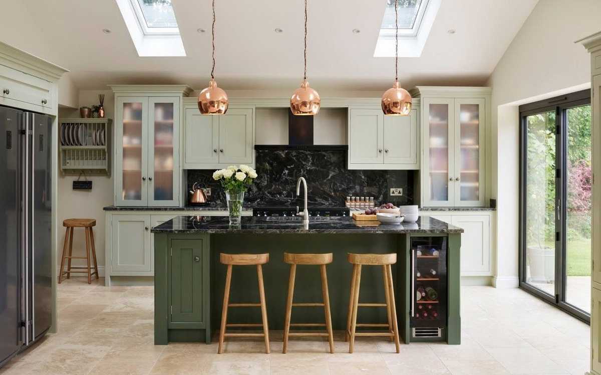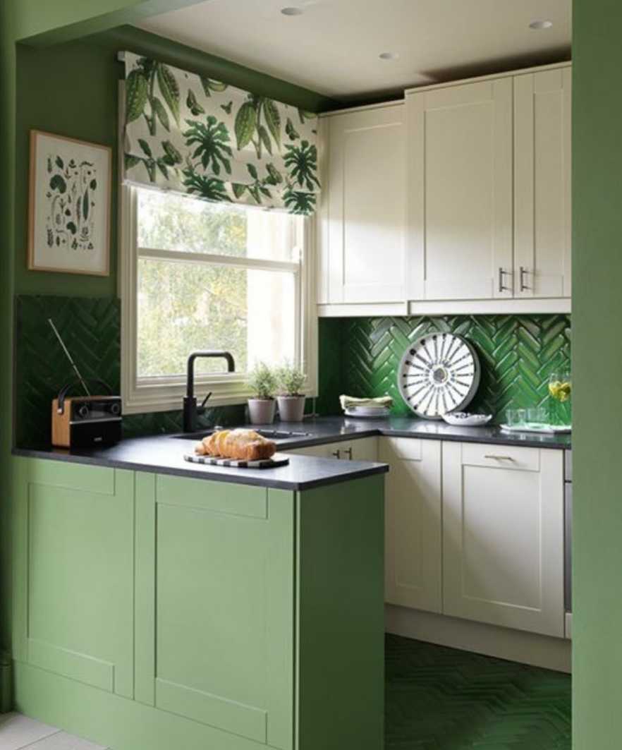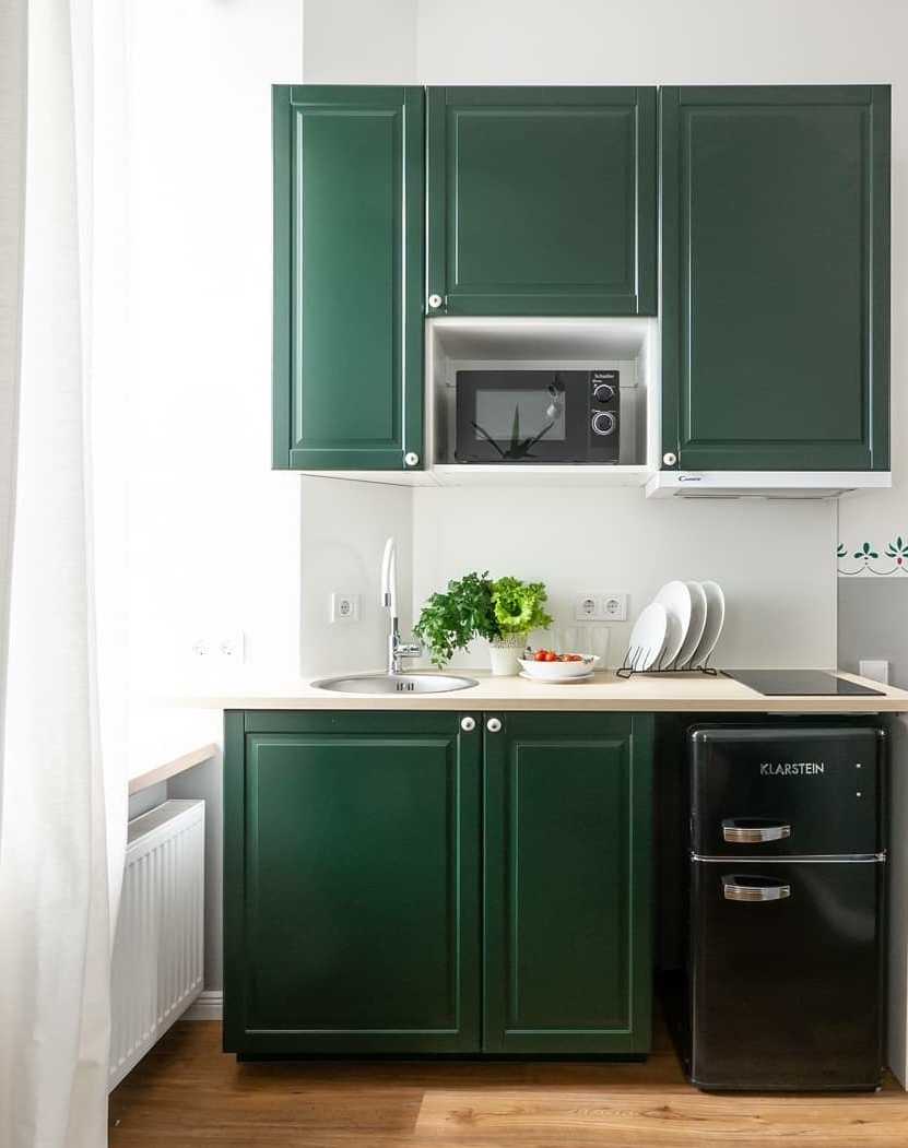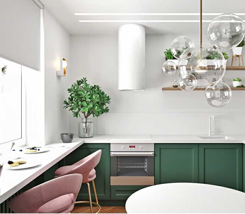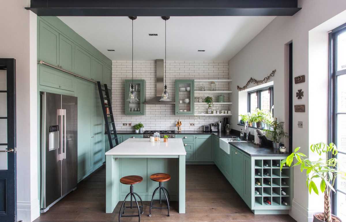 Как сочетать зеленый кухонный гарнитур с интерьером