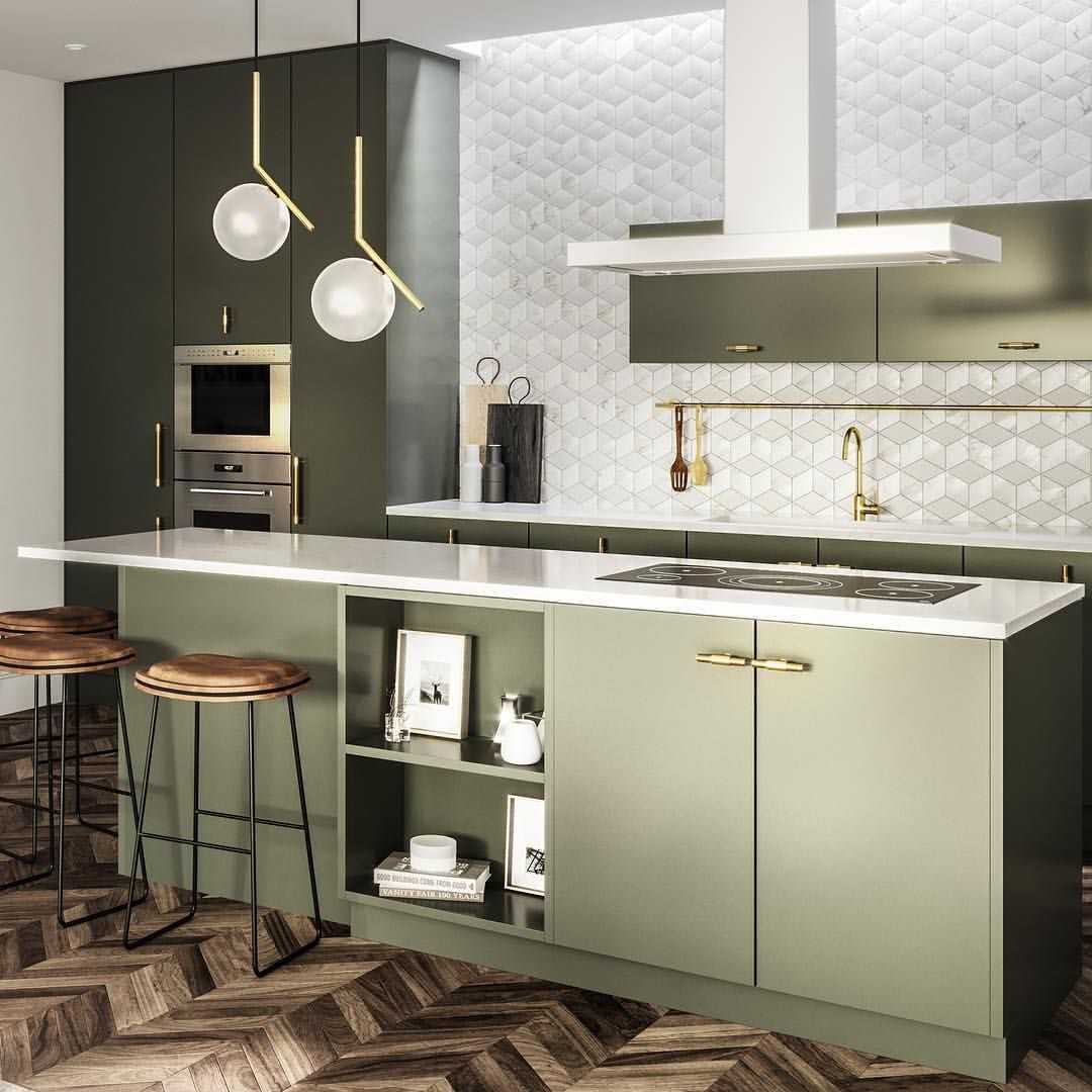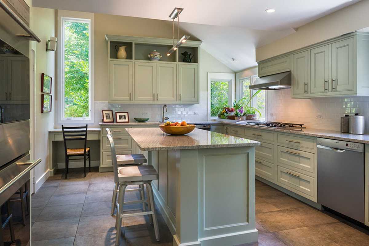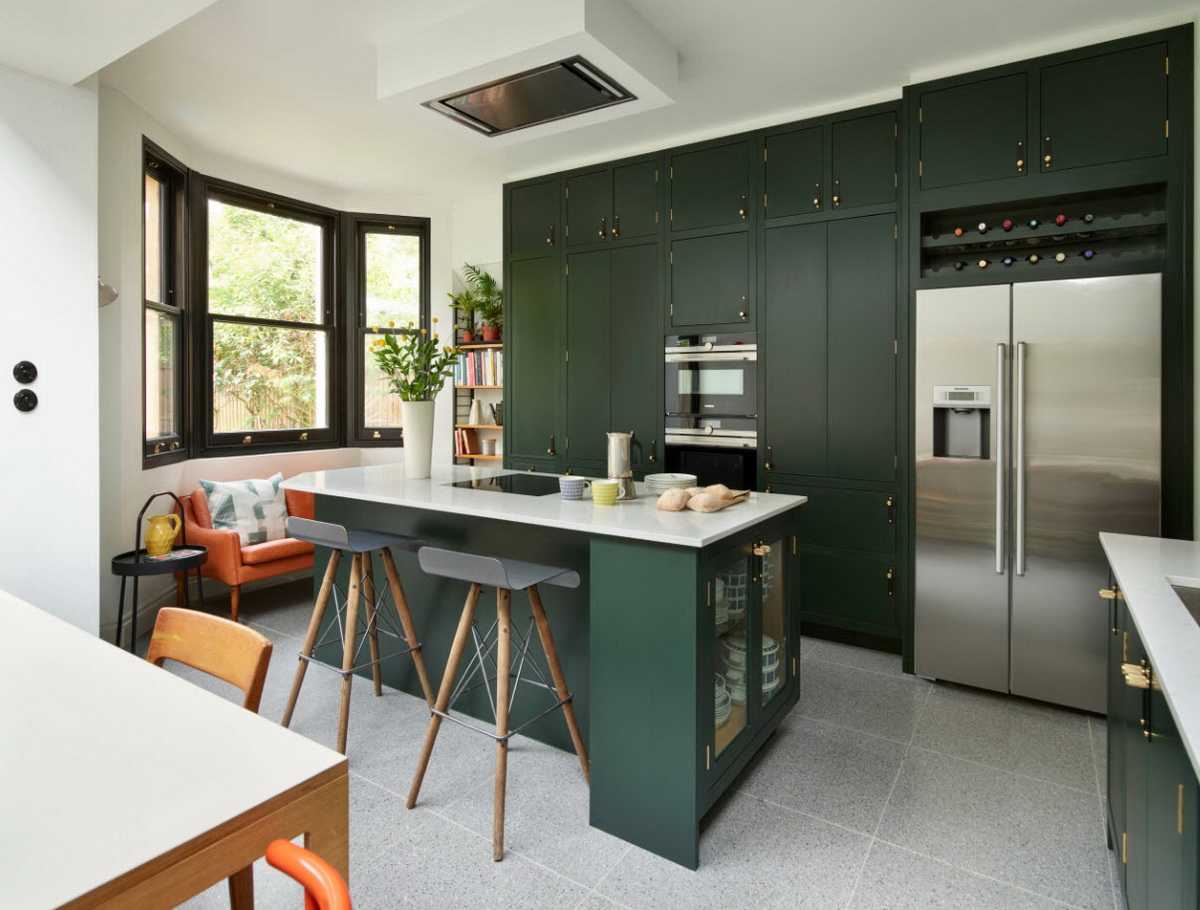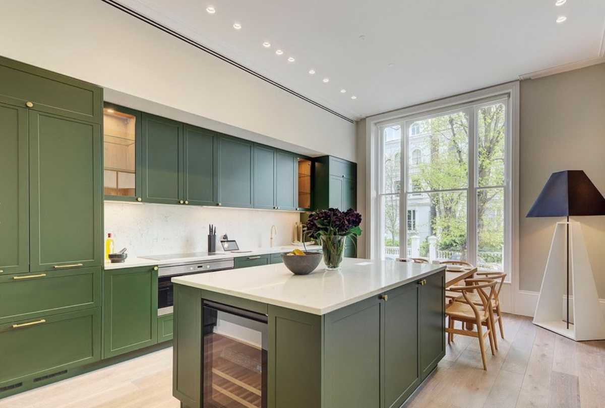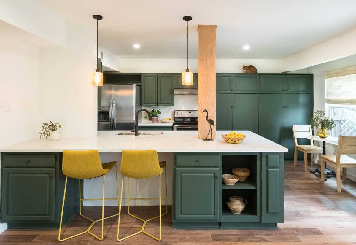 Как сочетать зеленый кухонный гарнитур с интерьером