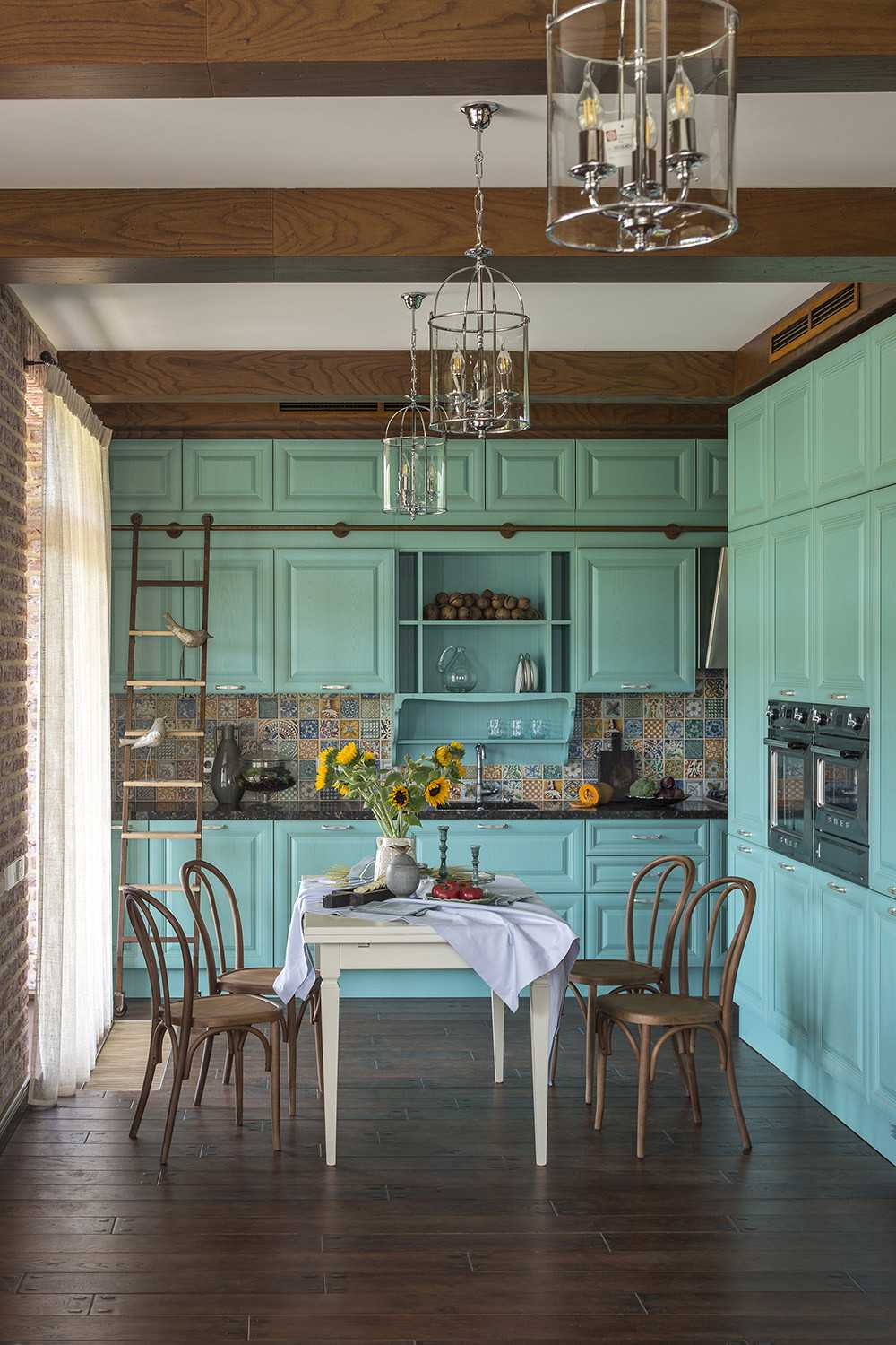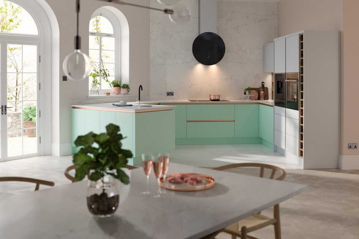 Очень нежный светлый тон, который отлично подойдет для небольшой кухни. Он будет визуально расширять пространство и делать его светлей. Мятный обладает успокаивающим эффектом, он словно окутывает уютом. Не случайно этот цвет часто выбирают для кухонь в стиле прованс.