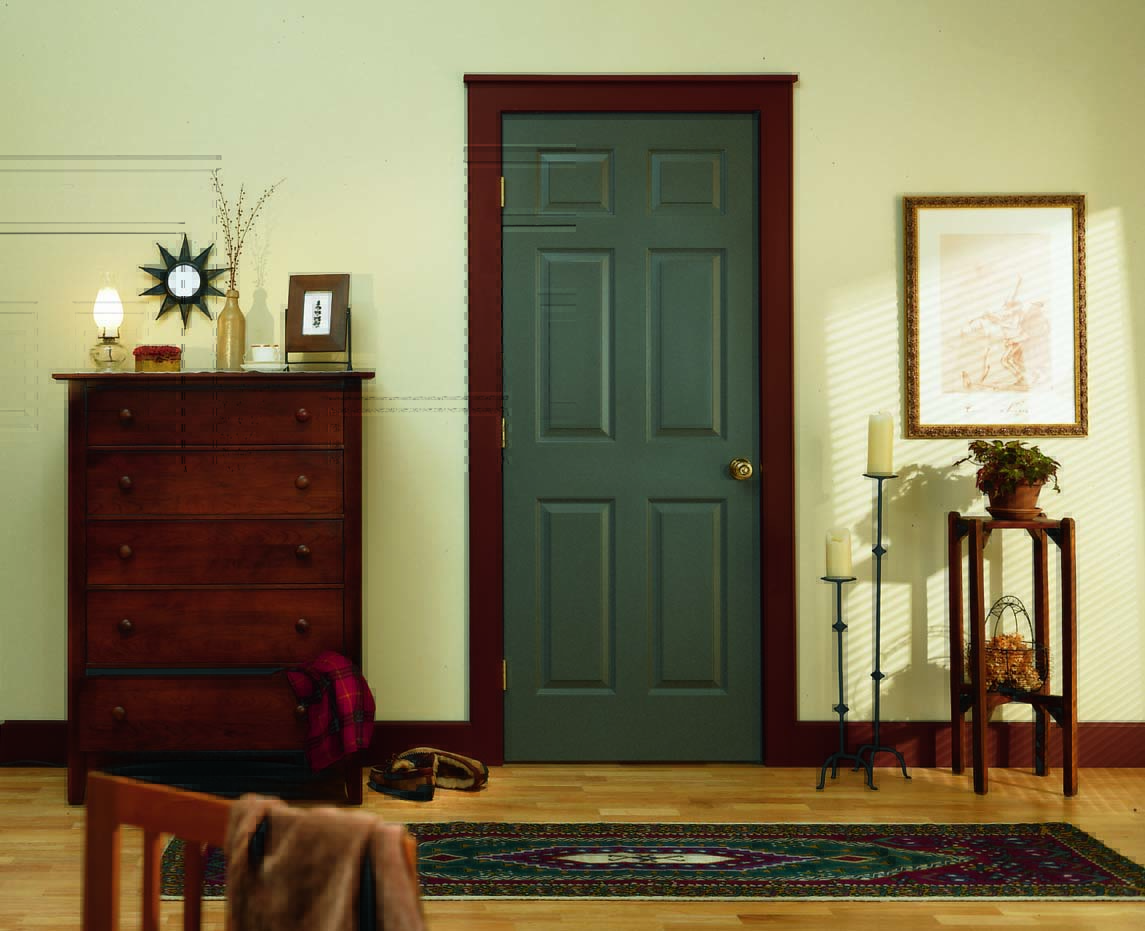 Двери лучше красить пастельными либо темными тонами, светлые краски будут слишком быстро пачкаться, а также мелкие дефекты будут слишком выделяться. Вообще данное цветовое решение для дверных проемов редко используется, более привычно древесные материалы.