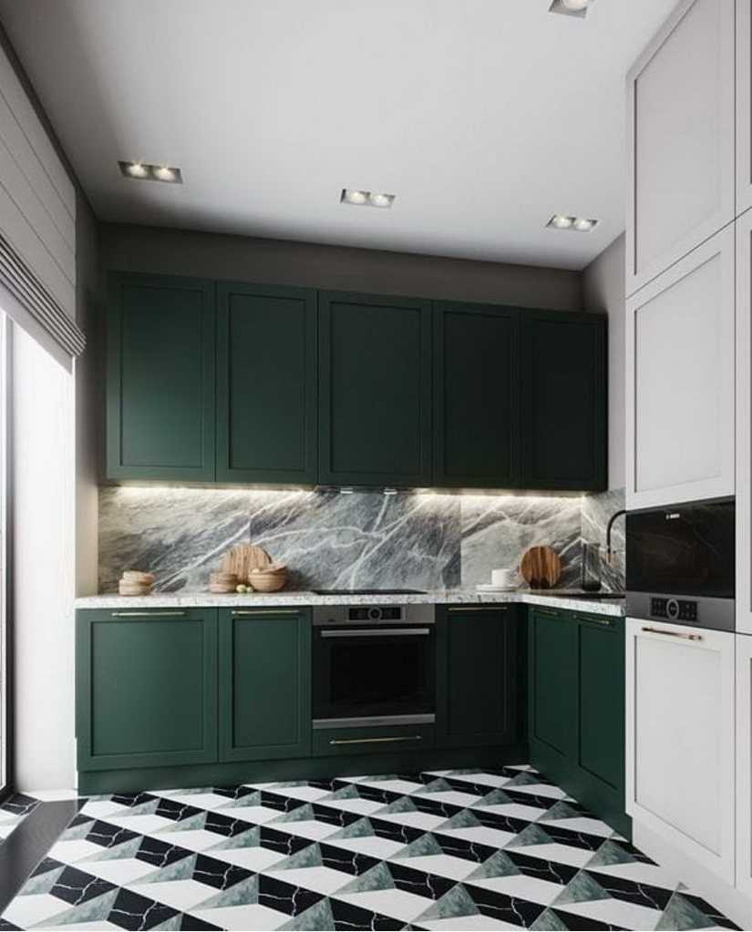 Этот цвет – истинный фаворит. Глубокий, насыщенный – он выглядит изысканно и благородно. Изумрудная кухня способна вписаться даже в классический стиль, но при этом не менее эффектна будет и в реализации современных стилей.