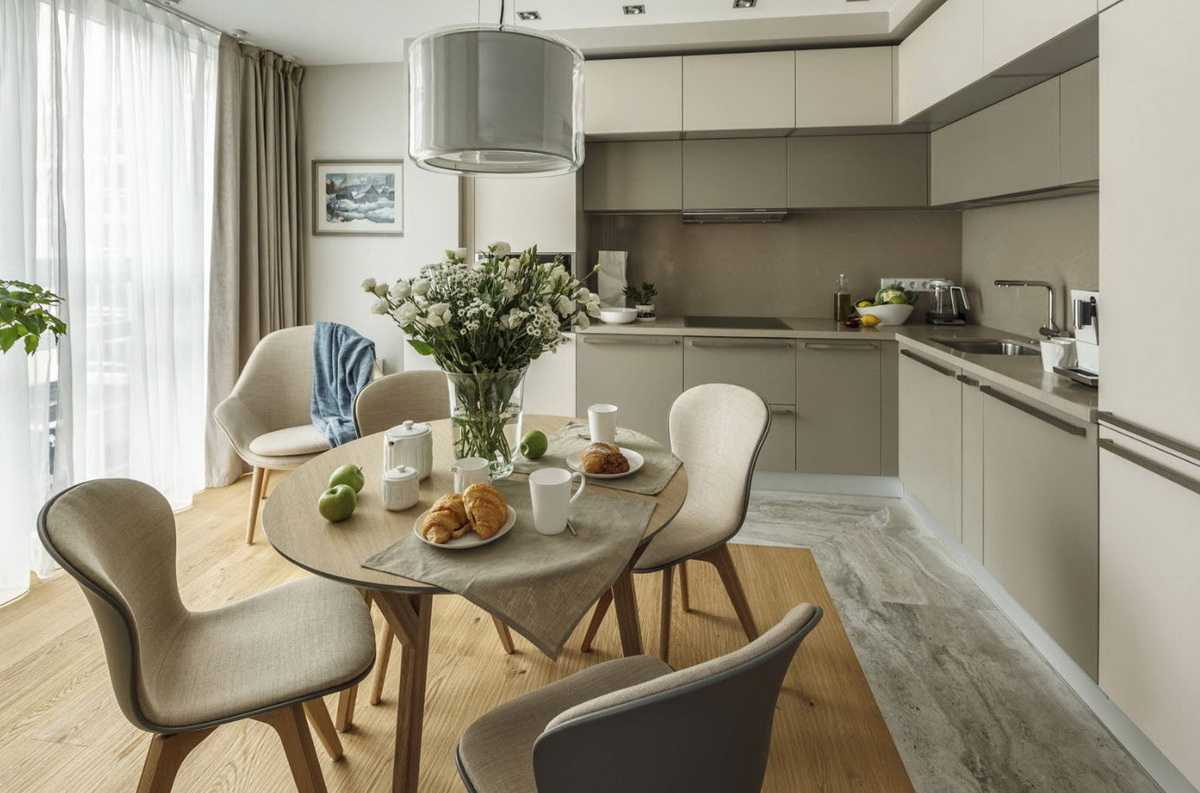 На фото стильная просторная кухня
