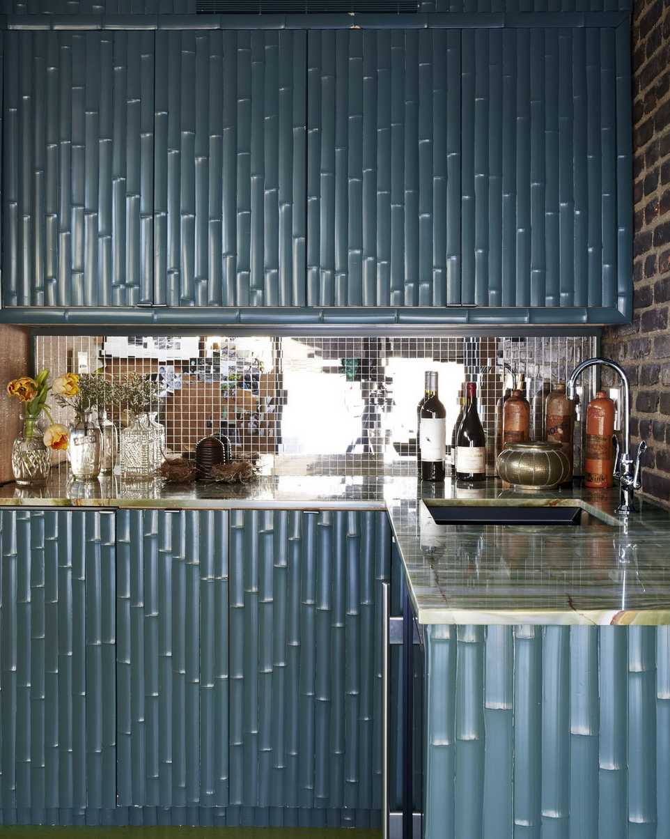 Зеленый — естественный цвет, который хорошо сочетается с различными оттенками кремового и коричневого. Использование этого цветного рисунка придаст вашей кухне органическую атмосферу, которая выглядит легко и расслабляет.