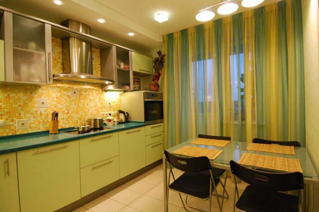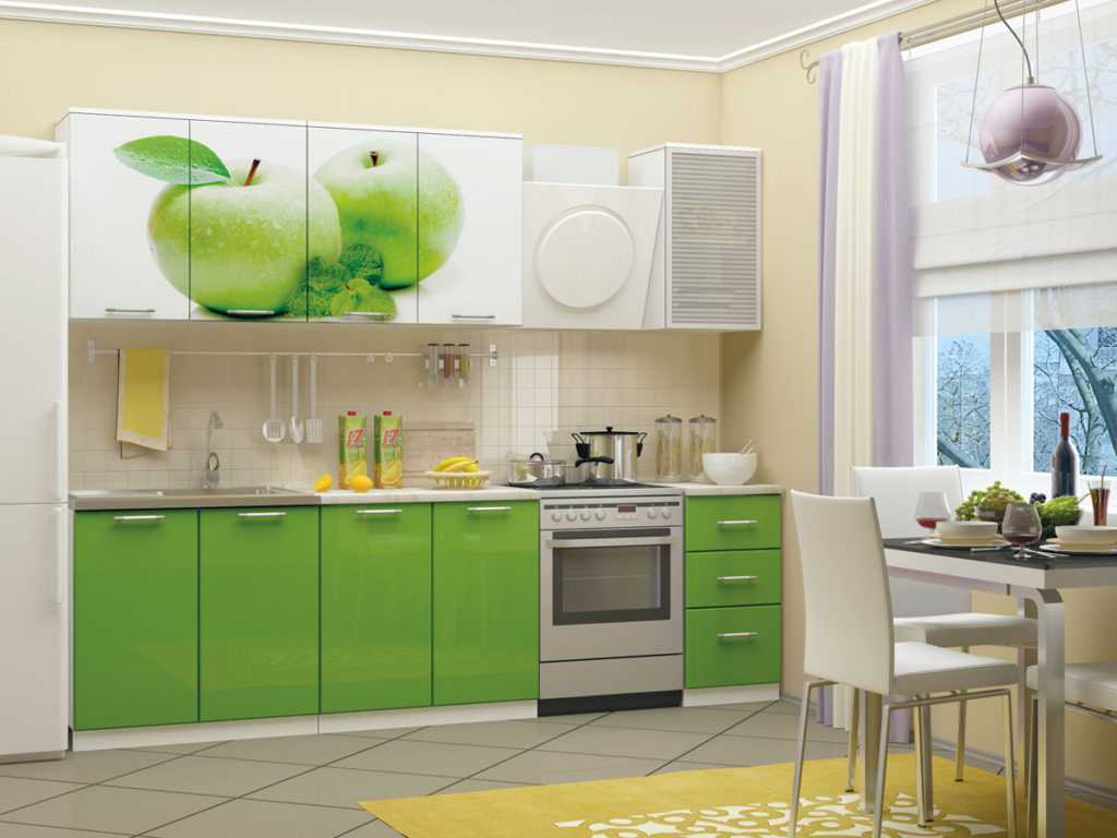 Любителям уютных, но в то же время стильных кухонь стоит выбирать для себя желто-зеленое сочетание оттенков. Они максимально натуральные, свежие, поэтому помещение всегда будет приятным и светлым. Кстати именно при таком цветовом решении многие предпочитают дополнять интерьер фасадами с фотопечатью. Это спорный вариант оформления, поскольку он довольно быстро может наскучить. При этом изменить их невозможно без финансовых затрат. Рекомендуем все тщательно обдумать, прежде чем выбирать для себя подобный вариант.