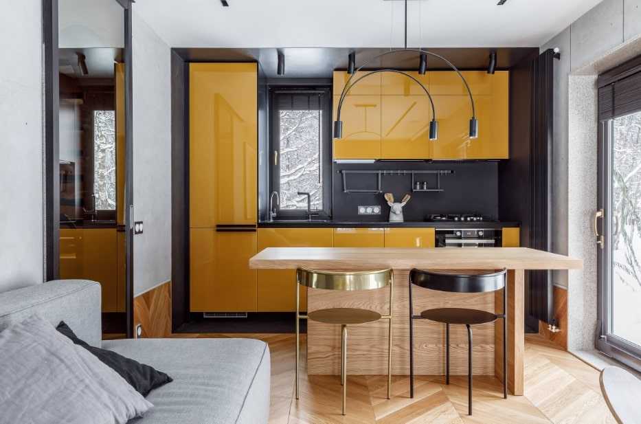 Среди классических решений для оформления кухонного пространства пользуется популярностью и сочетание черного и желтого цвета. Смотрится такой дизайн максимально эффектно