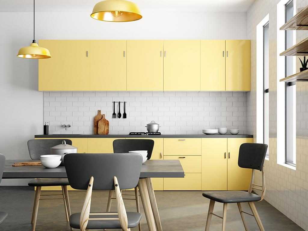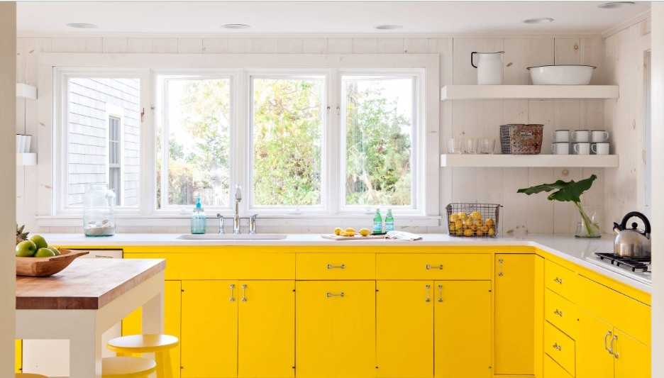 Желтый, влияет на аппетит и уровень энергии. Он улучшает дизайн и декорирование, смешивая солнечные теплые или приятные зеленовато-желтые оттенки. Краска, узоры обоев, настенная плитка, кухонная мебель, столовая мебель, оконные шторы, напольные ковры или абажуры в желтых цветах-отличные идеи дизайна кухни, которые создают сильное влияние на людей и украшают кулинарные интерьеры.