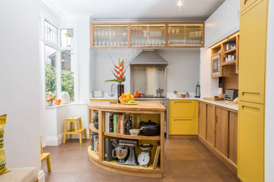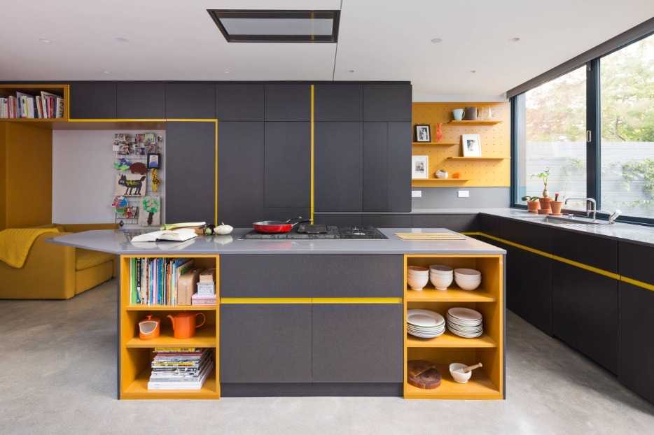 Желто-зеленый создает ощущение наполненности солнечным светом, придавая кухне уют.Этот цвет можно разбавить, добавив несколько контрастных деталей.