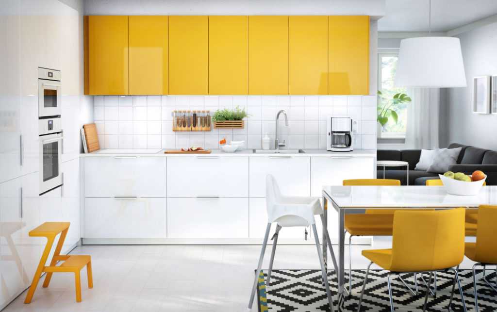 Пожалуй, наиболее популярным решением в современном мире является сочетание белого и желтого цвета в интерьере кухни. В данном случае белый цвет не только уравновешивает теплоту, но и создает эффект свечения, свежести. То есть в помещении будет приятно находиться в любое время суток.